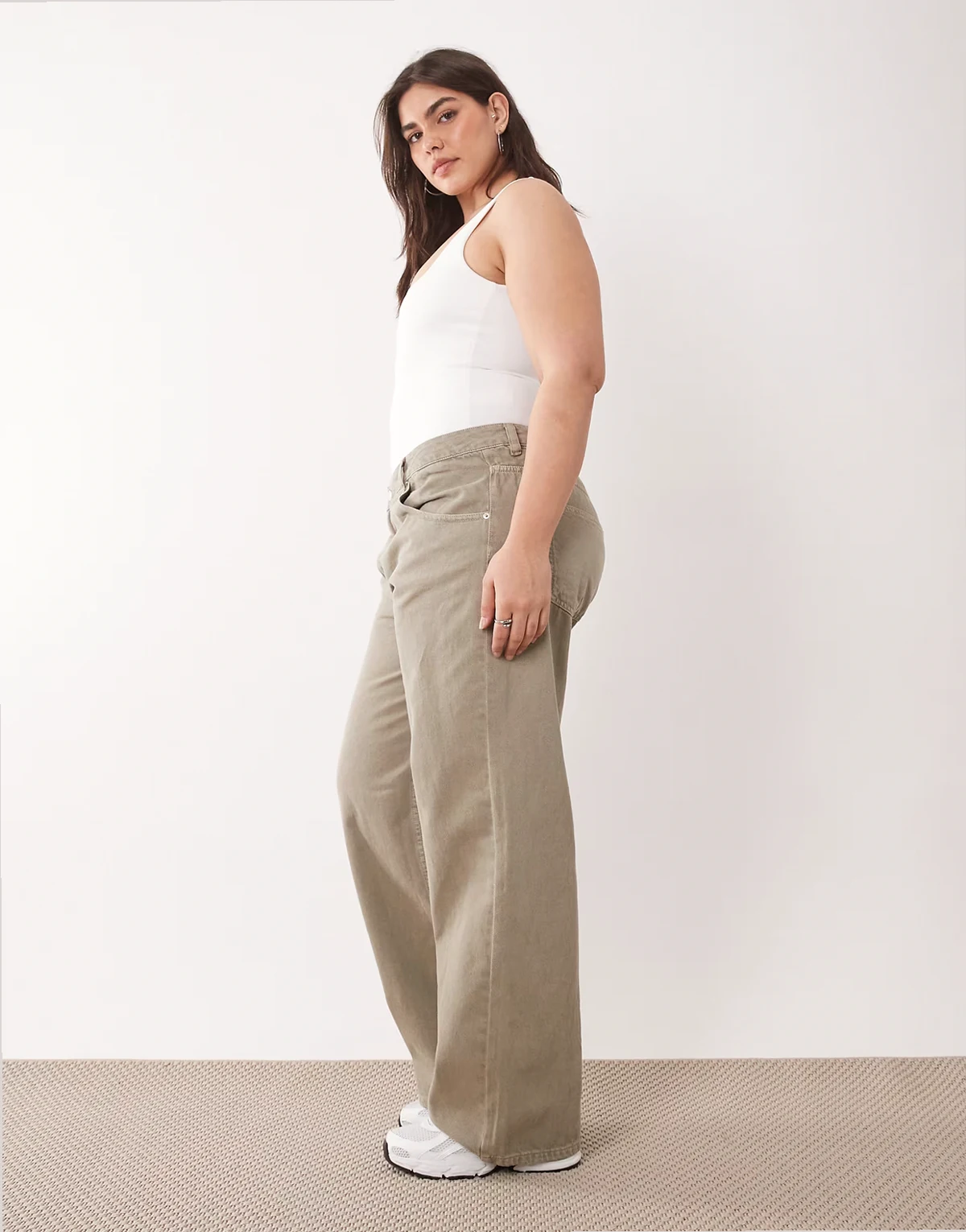 ASOS DESIGN Curve – Baggy-Jeans in Salbeigrün mit niedrigem Bund