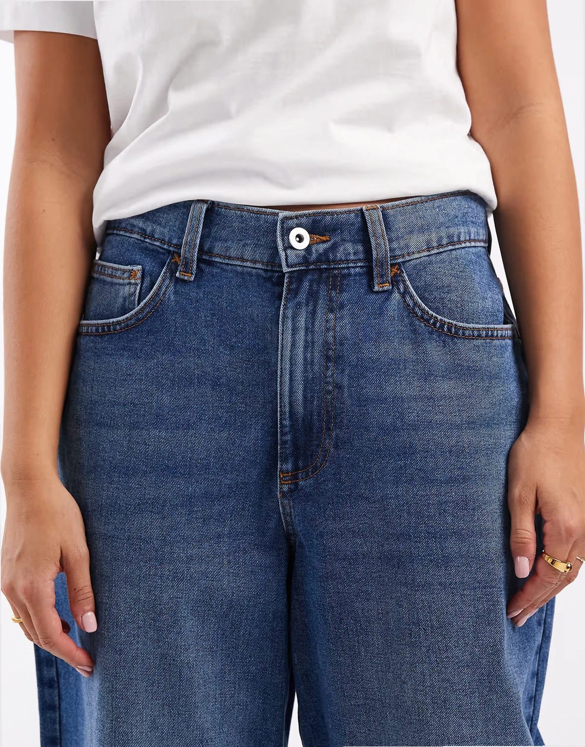 Denim ohne Stretch: mittelblaue Waschung