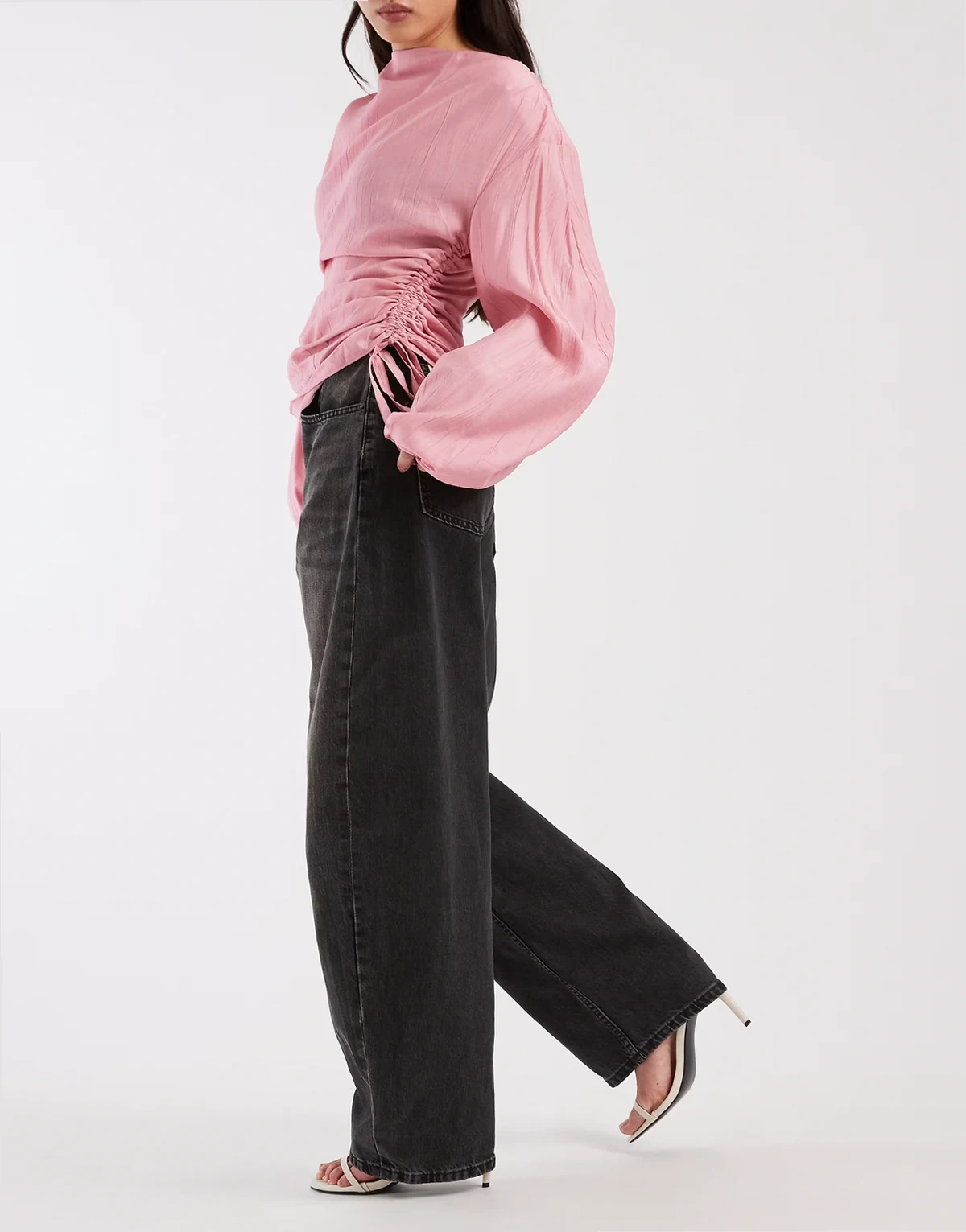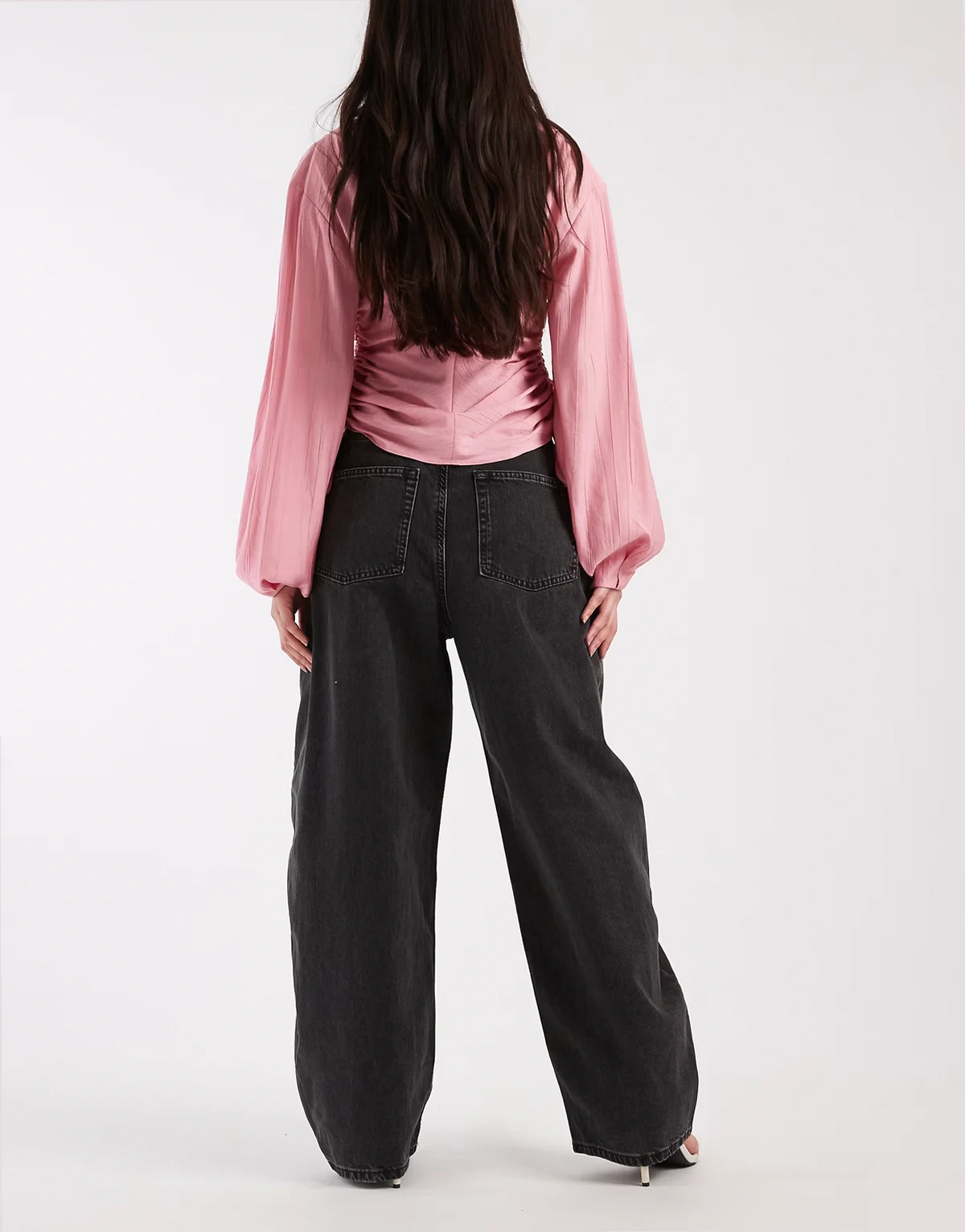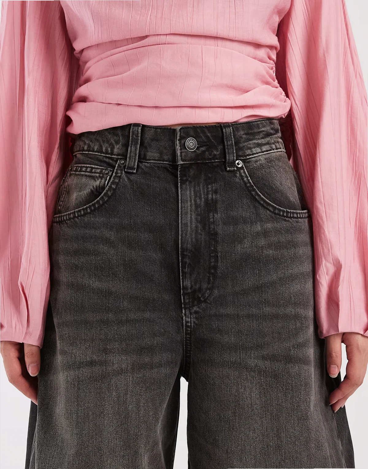– Jeans in verwaschenem Anthrazit mit weitem, abgerundetem Bein und hohem Bund