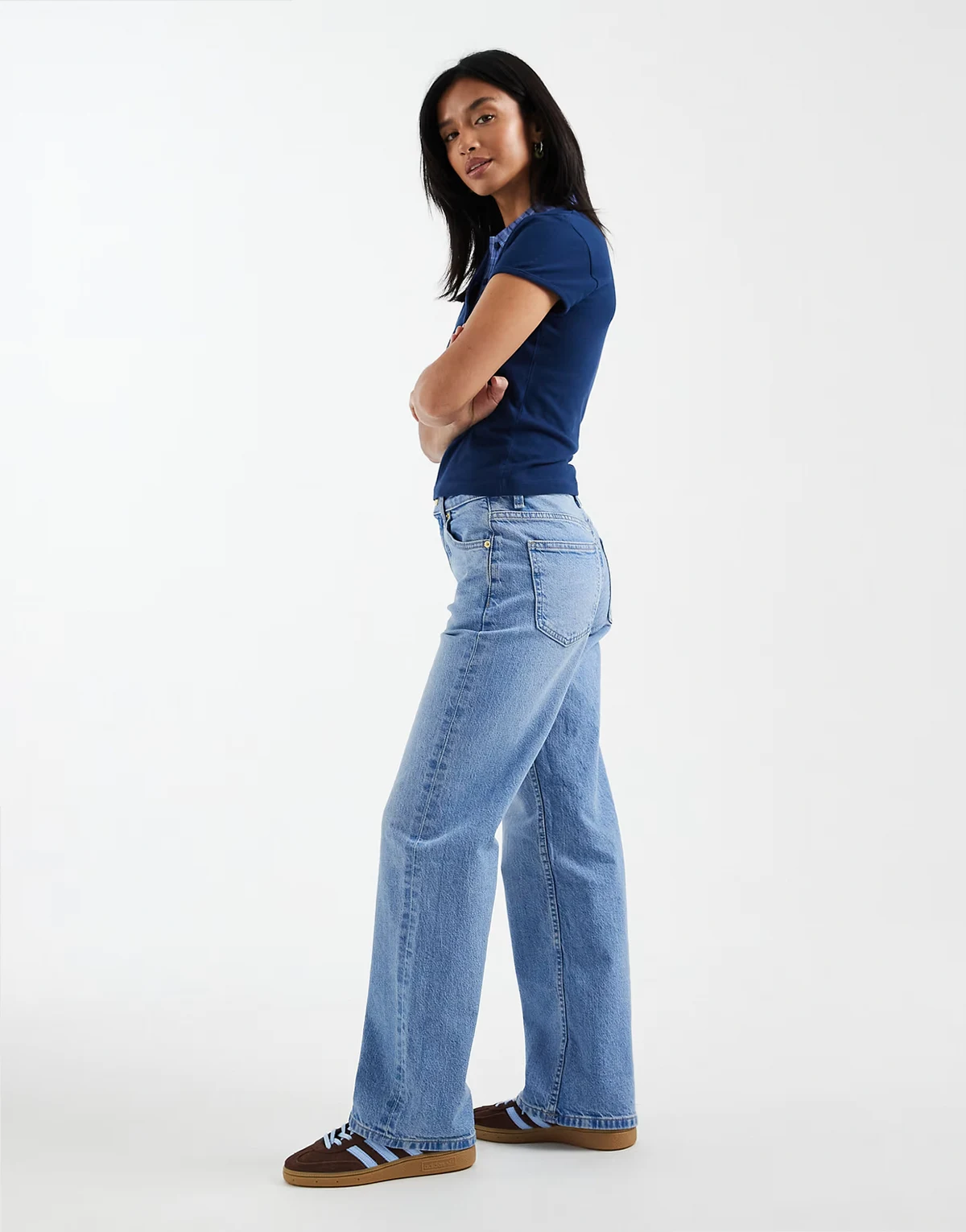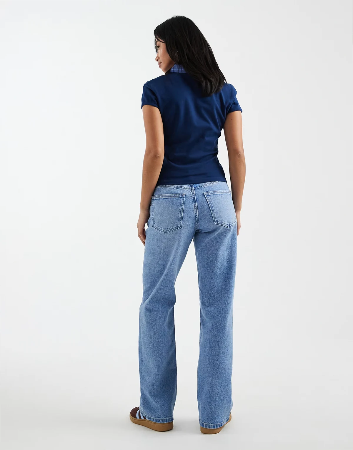 ASOS DESIGN Petite – Bequeme Stretch-Jeans in leuchtendem Blau mit geradem Schnitt