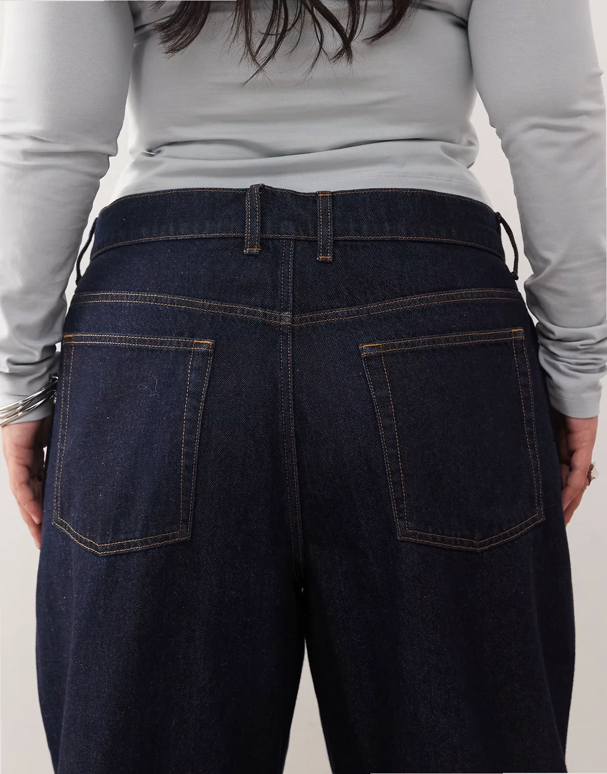Denim ohne Stretchanteil: dunkelblaue Waschung