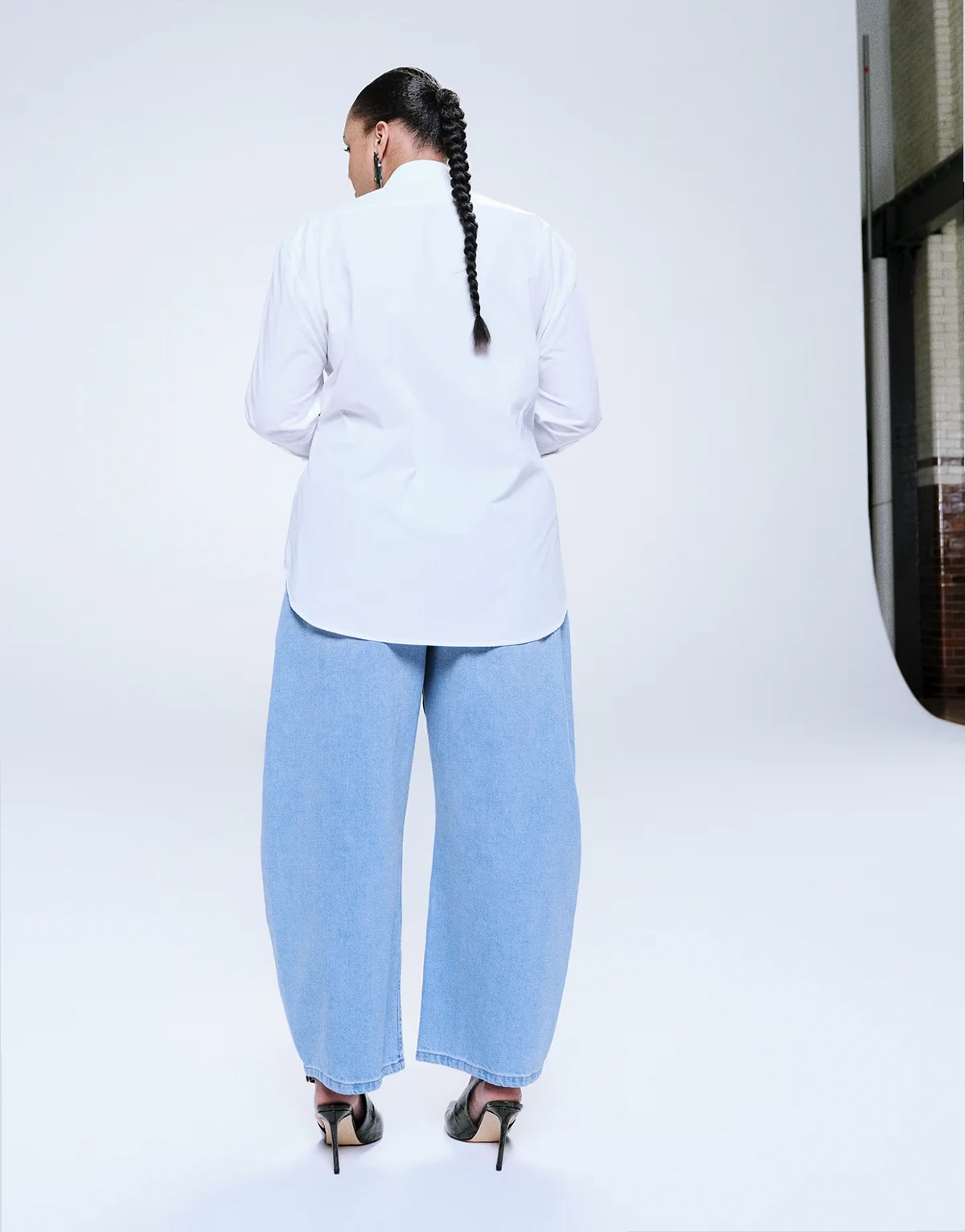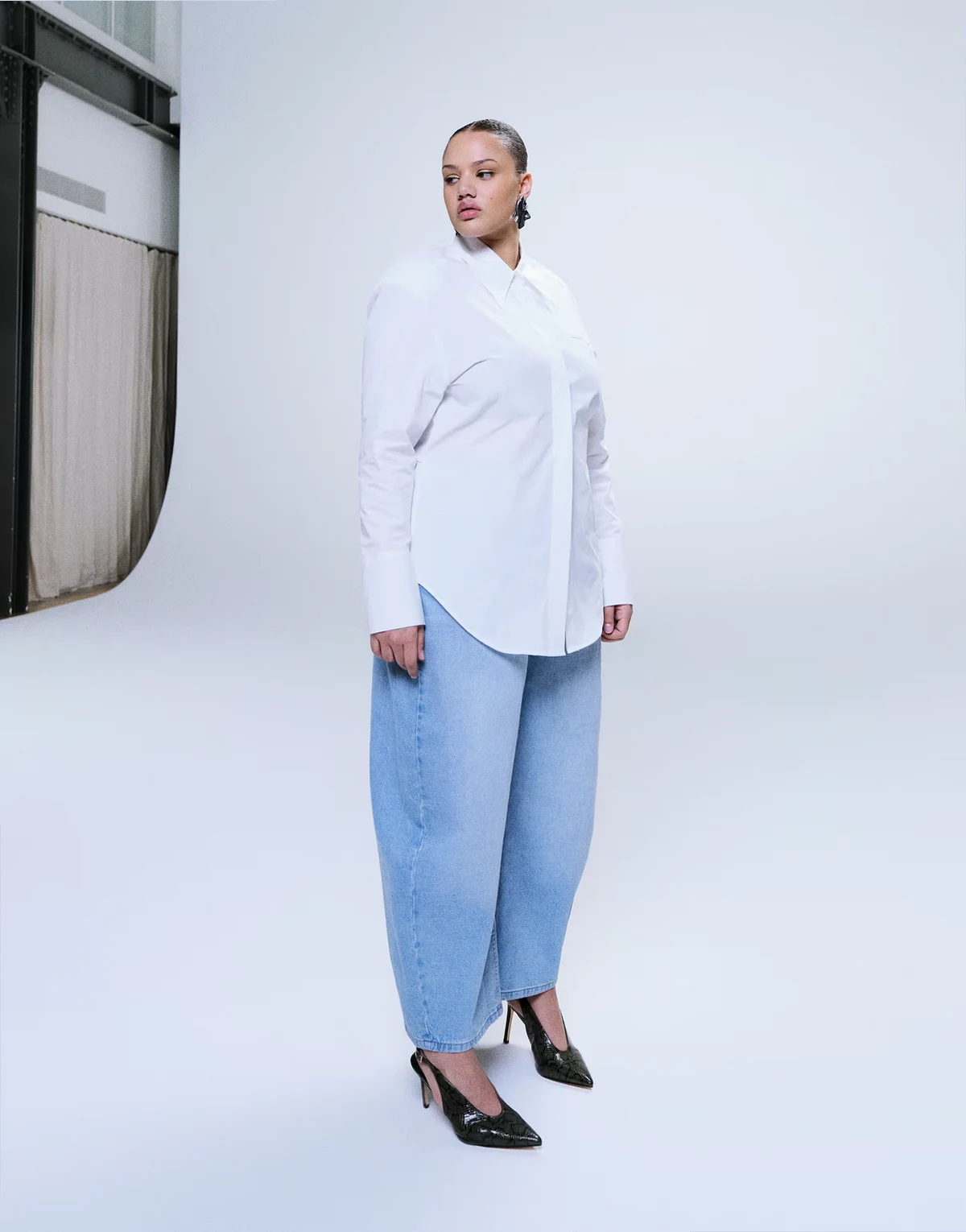 ASOS DESIGN Curve – Barrel-Jeans in heller Waschung mit hohem Bund