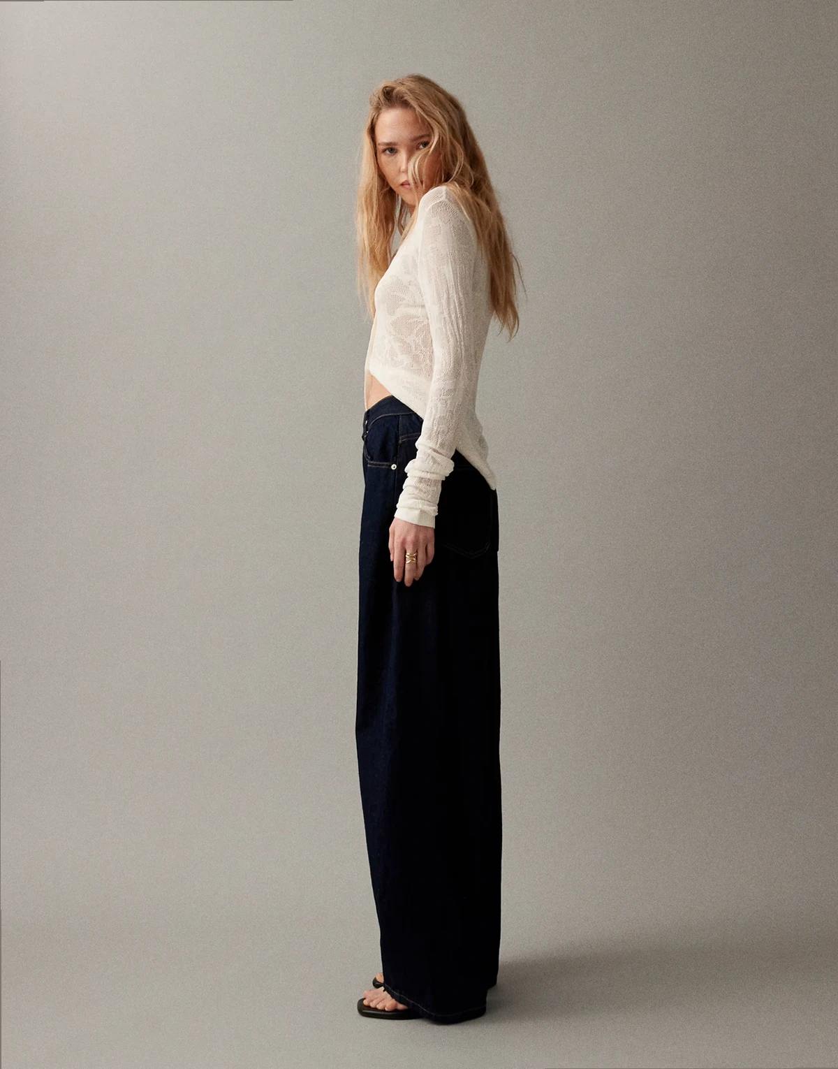 Mit schmal zum Knöchel hin zulaufendem Schnitt