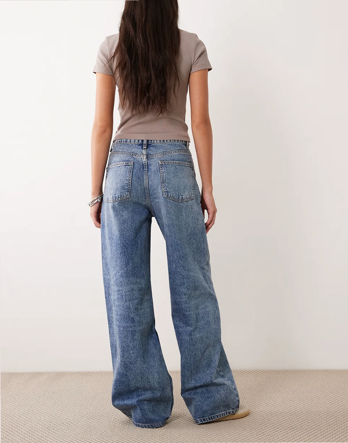 – Weit geschnittene Dad-Jeans in mittlerer Waschung mit überkreuztem Bund