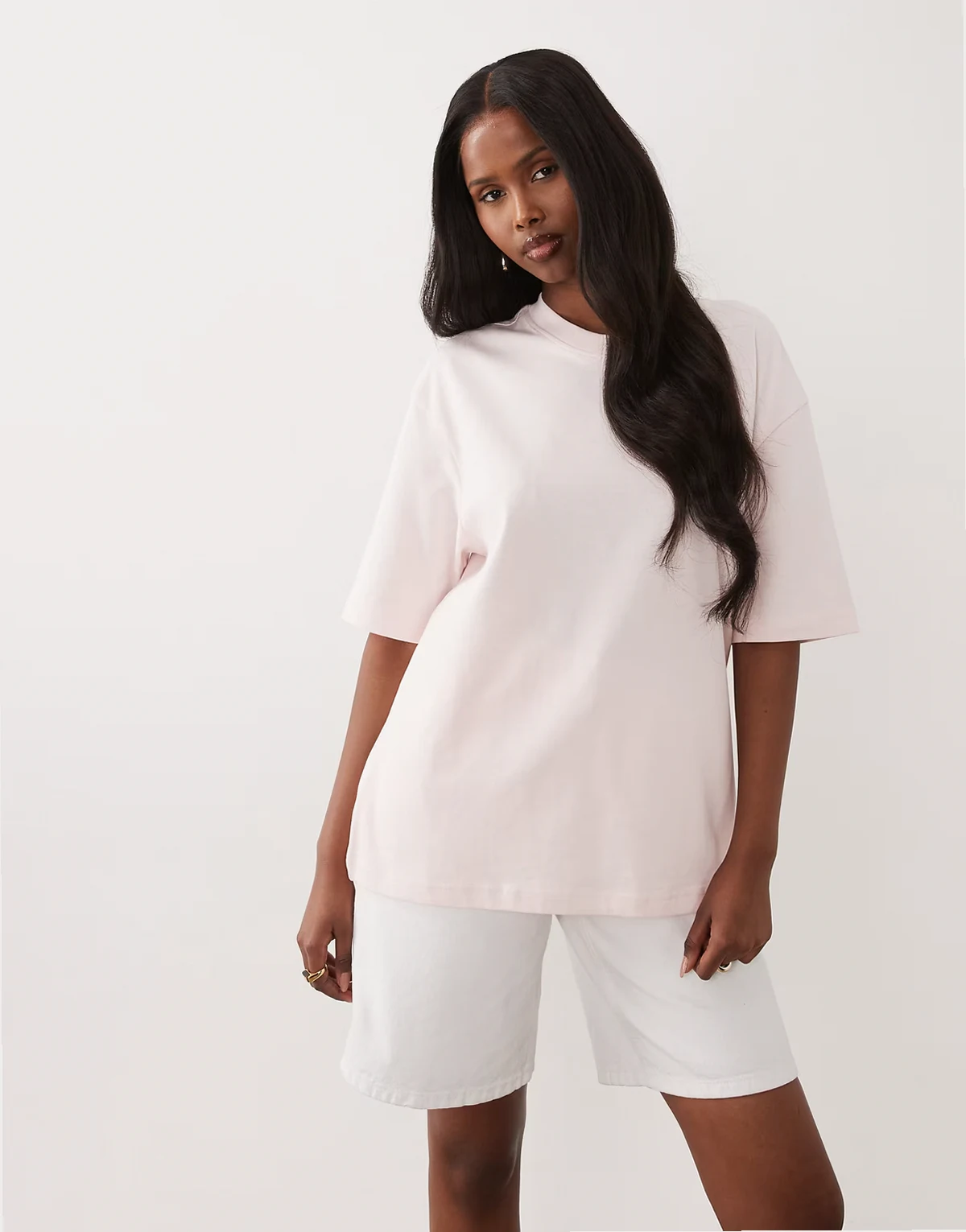 – Kurzärmliges Oversize-T-Shirt in Rosa mit rotem „Love Letters from Paris“-Print