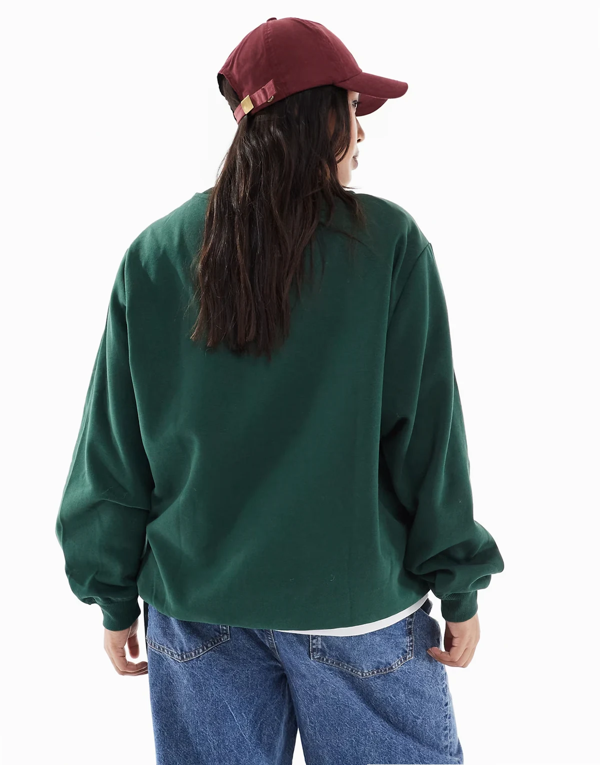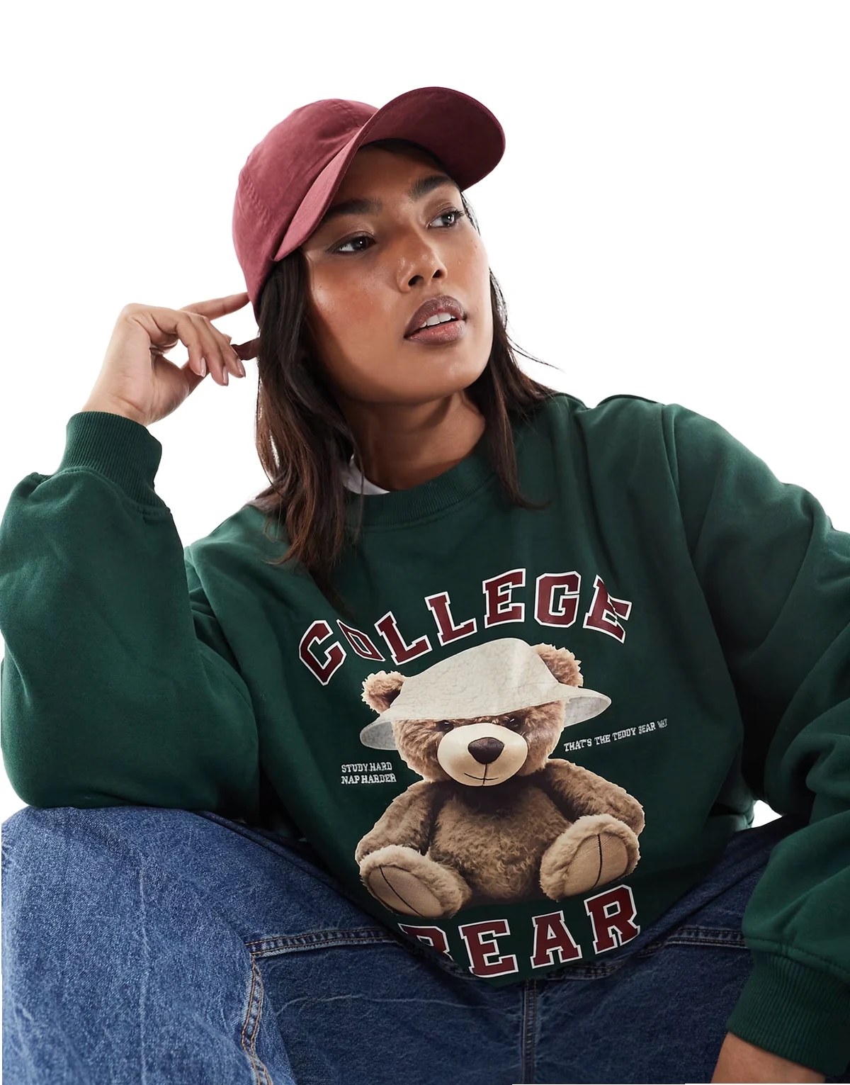– Oversize-Sweatshirt in Dunkelgrün mit Teddybär-Aufdruck