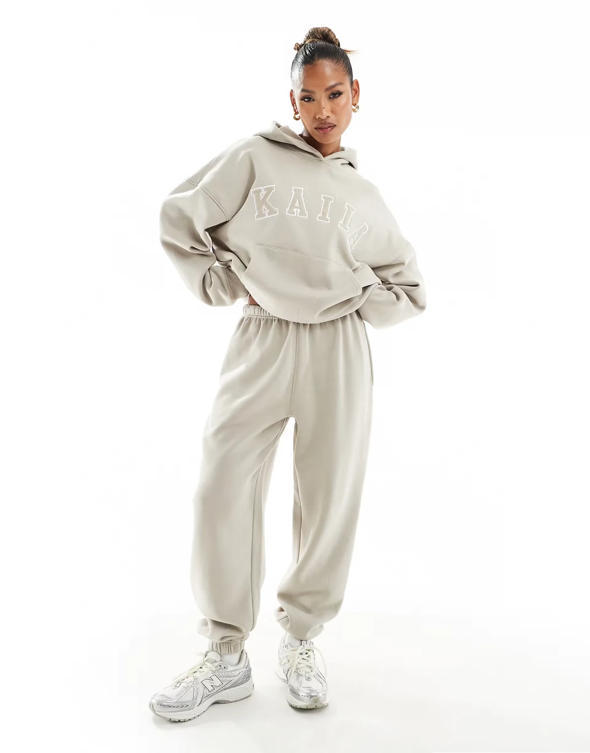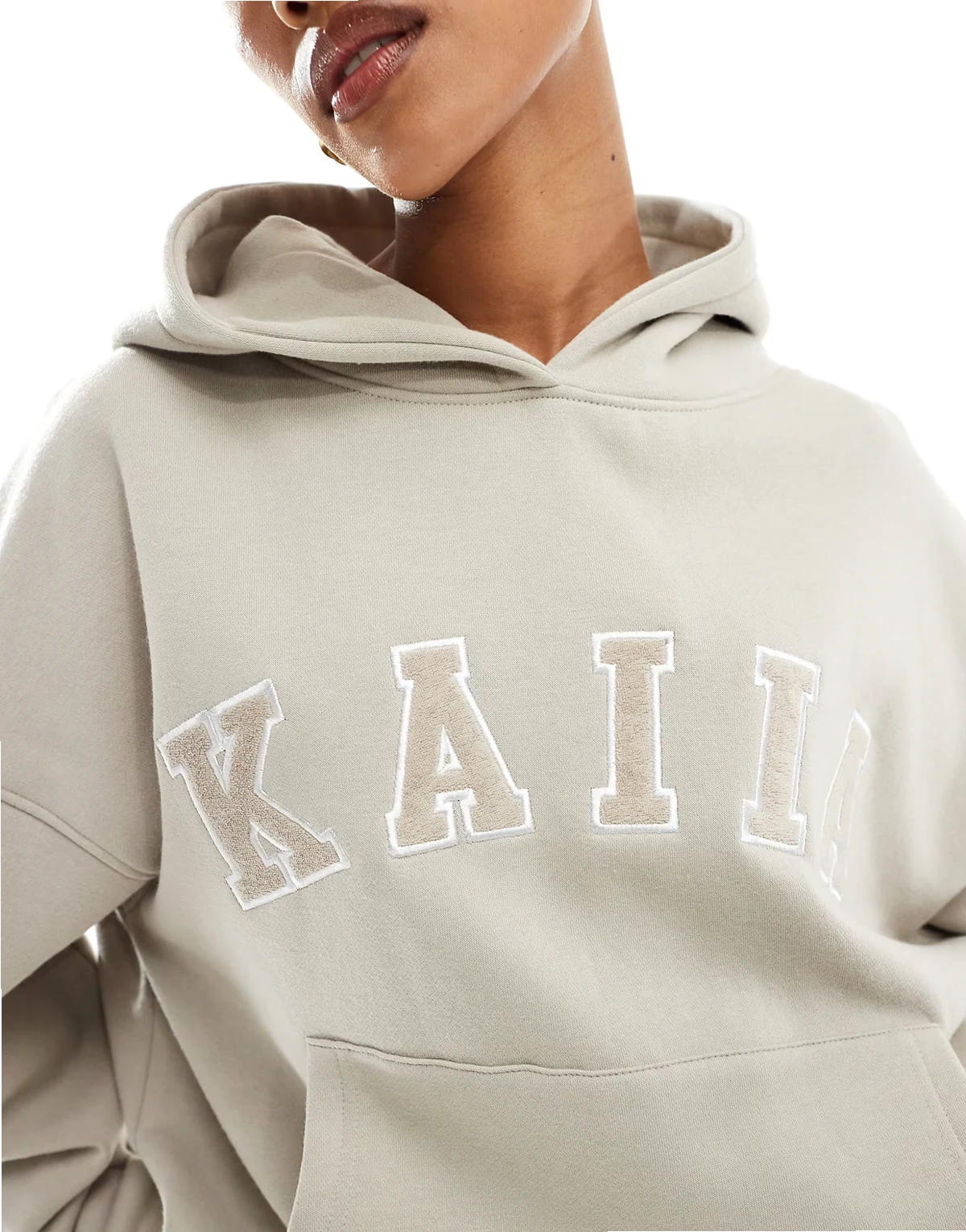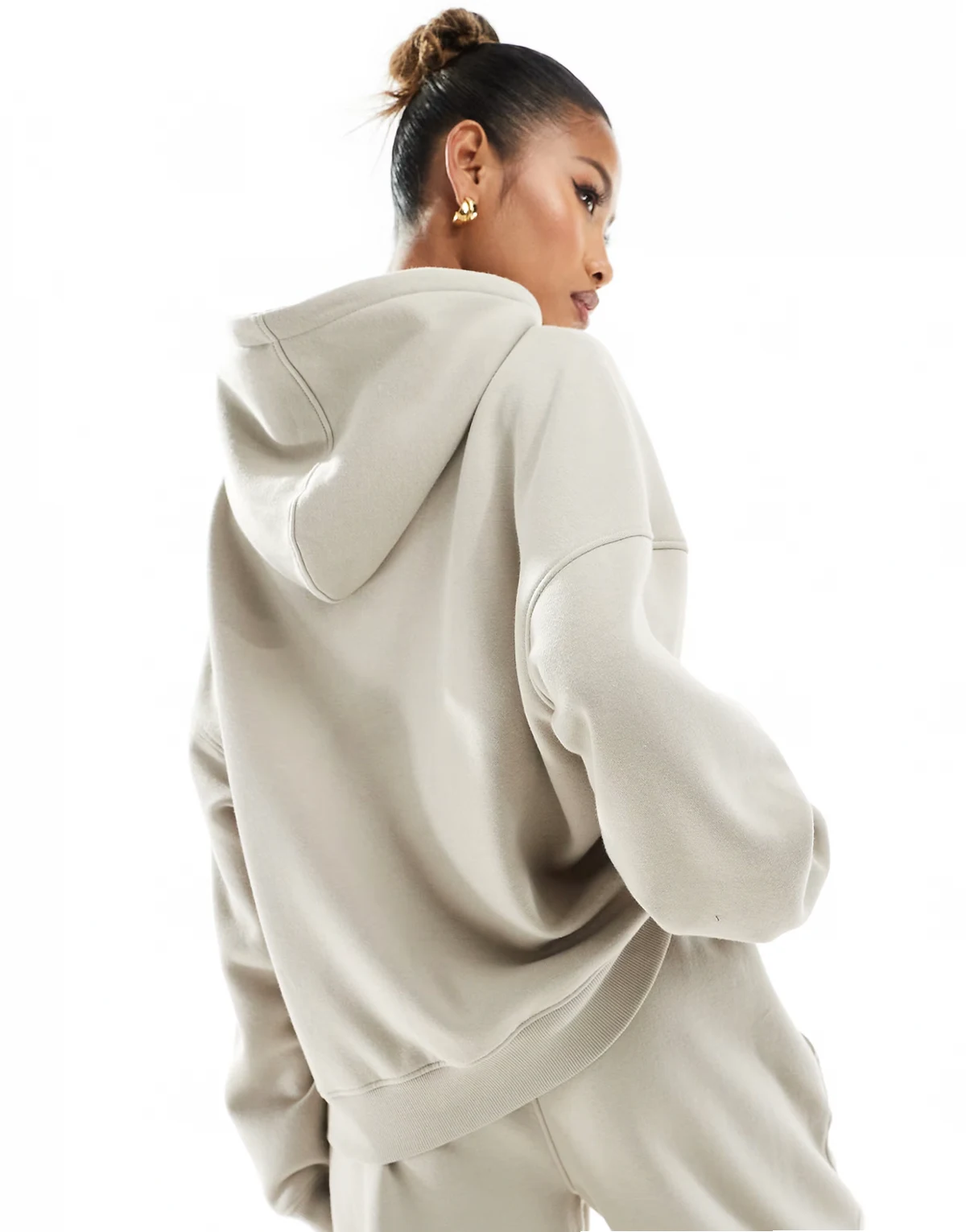 – Oversize-Kapuzenpullover aus Baumwollmix in Steinbeige mit Logo, Kombiteil