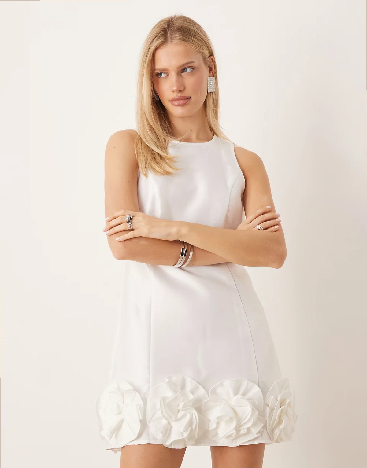 – Minikleid in Gardenia-Weiß mit Rüschensaum