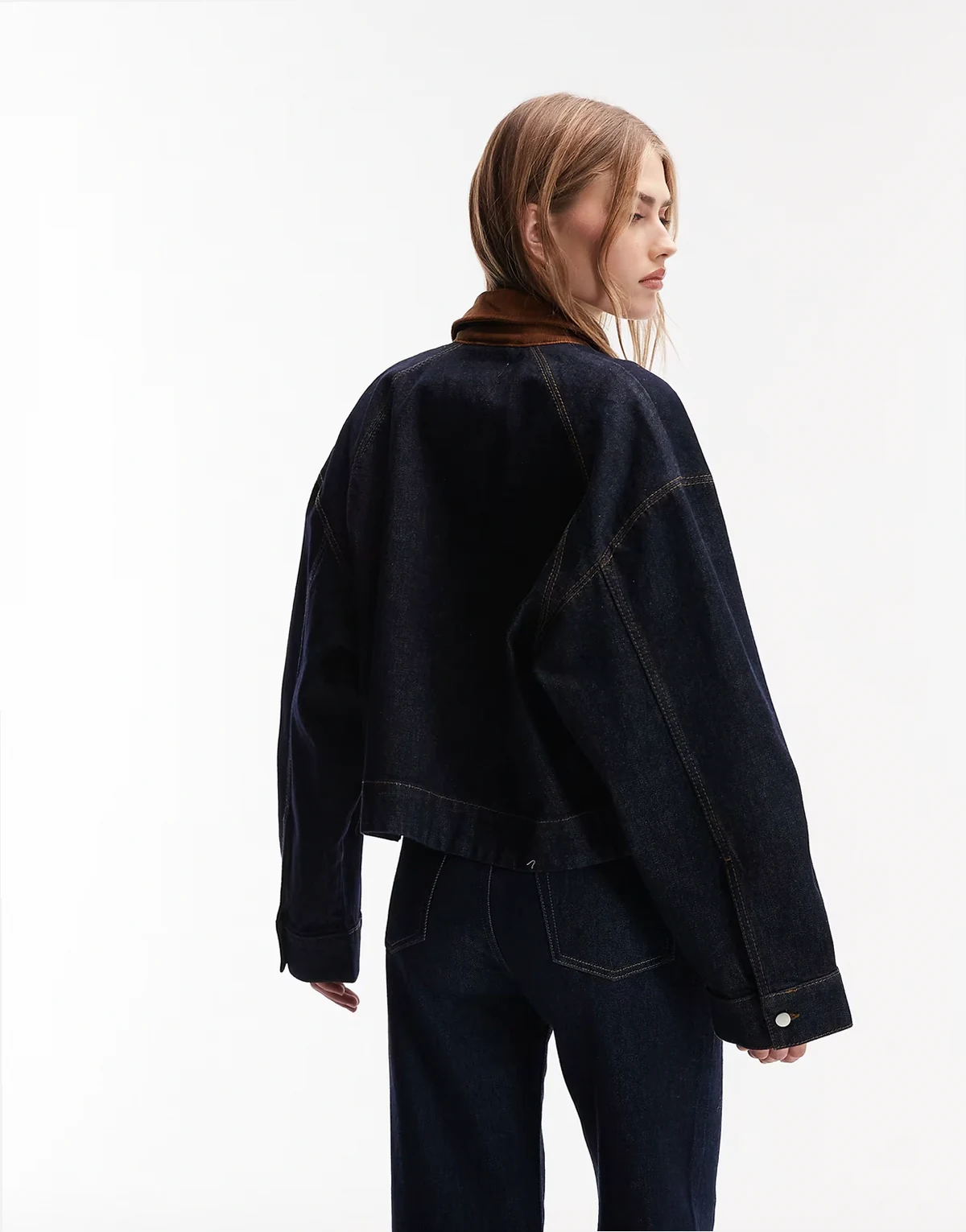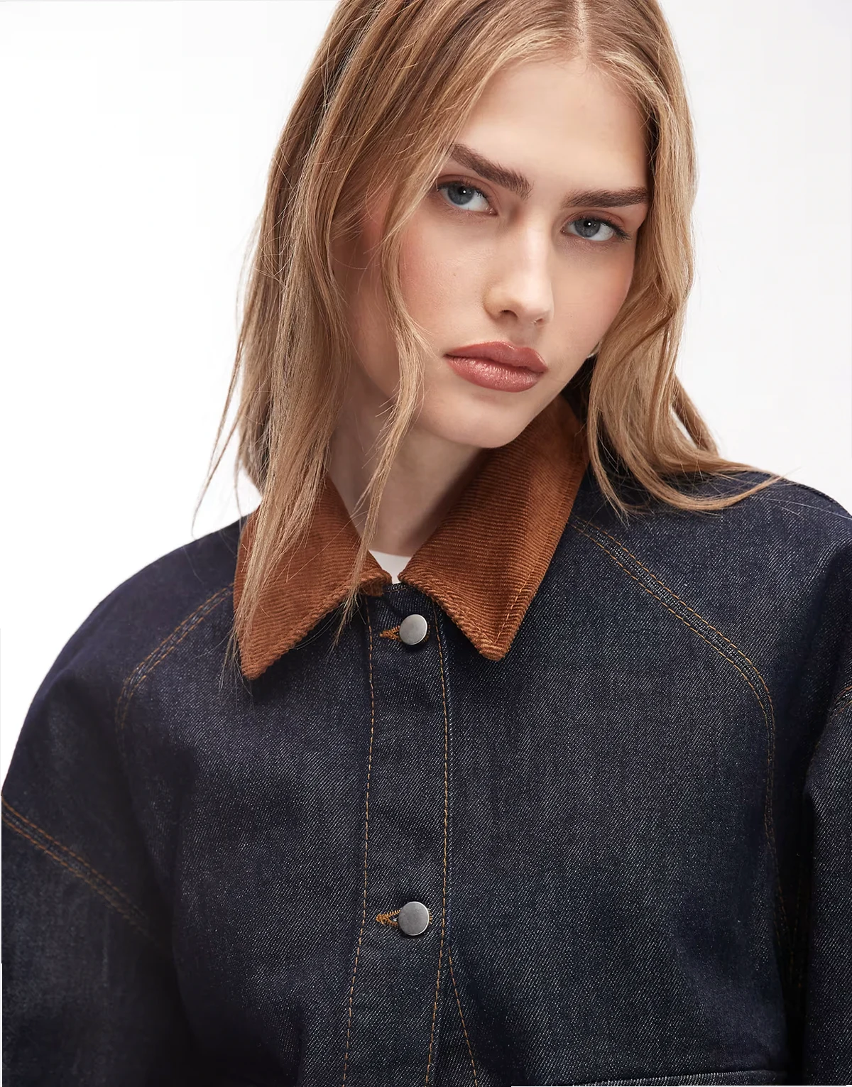 – Barn-Jacke aus Denim in dunkelblauer Waschung mit Taschen