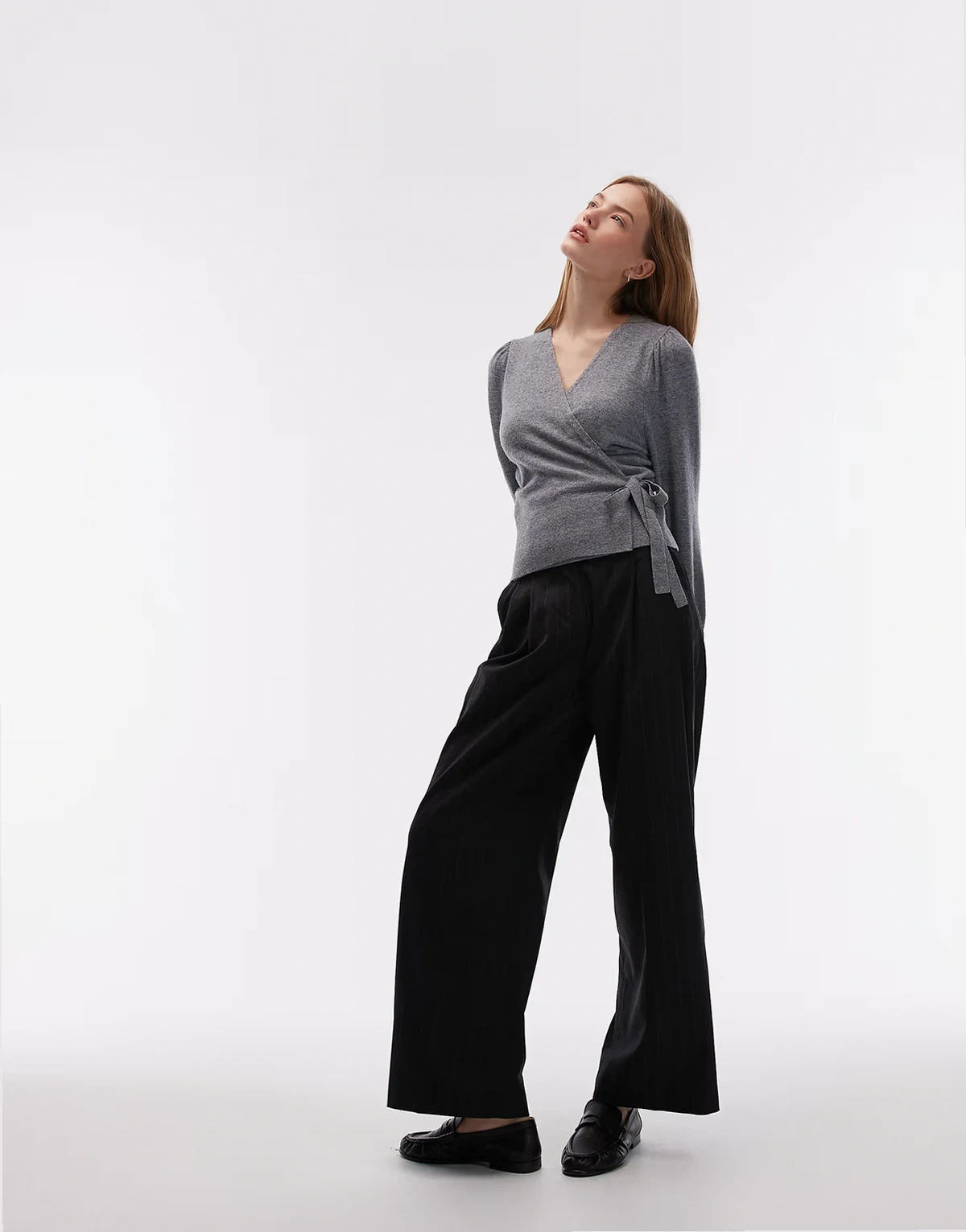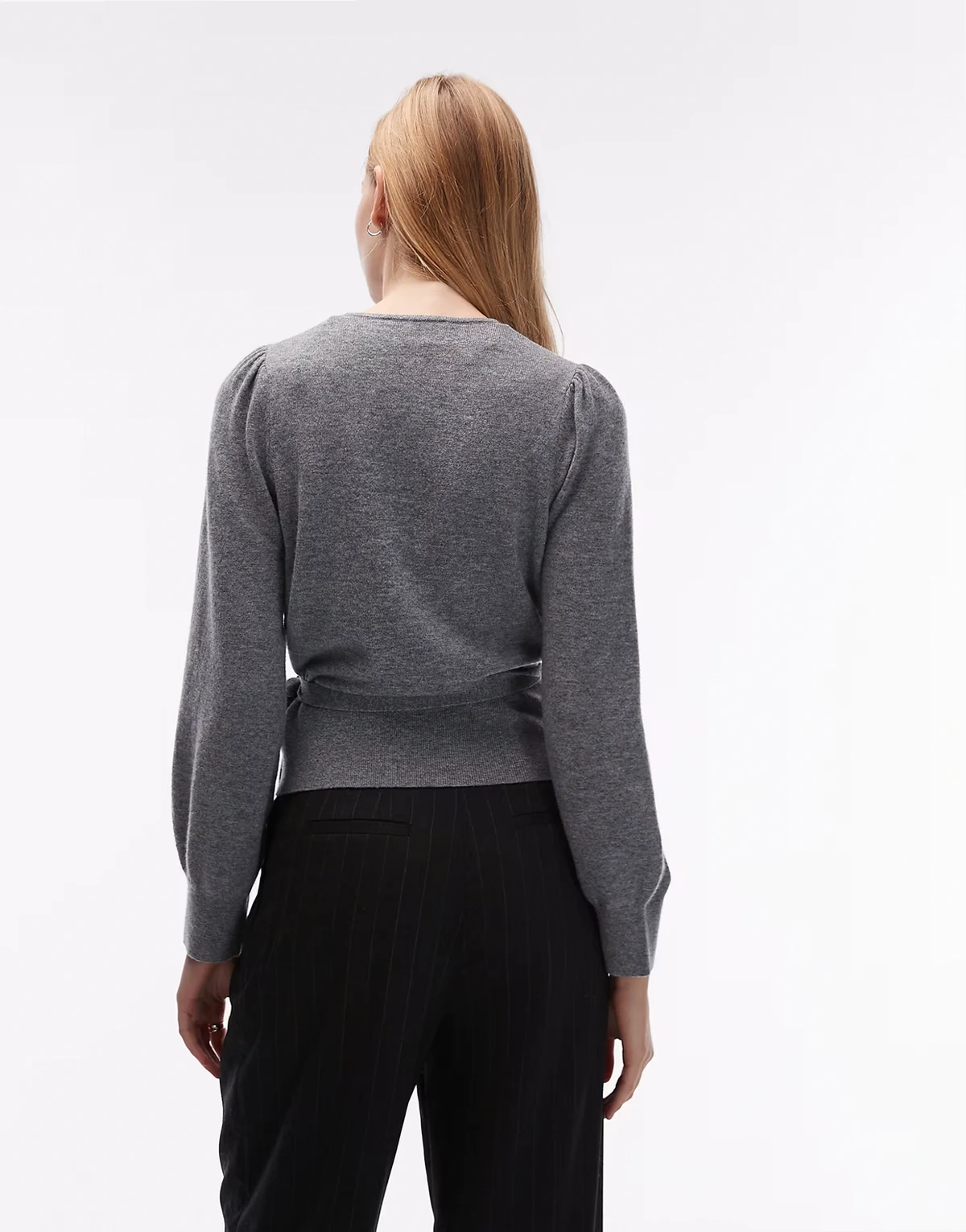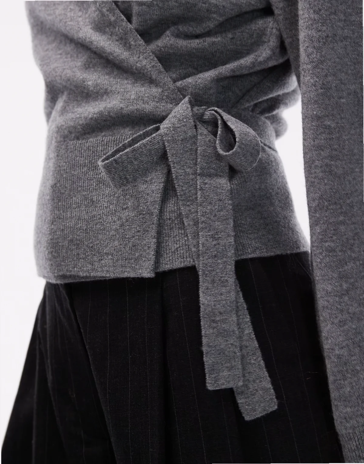 – Wickel-Strickjacke aus reiner Wolle in Dunkelgrau