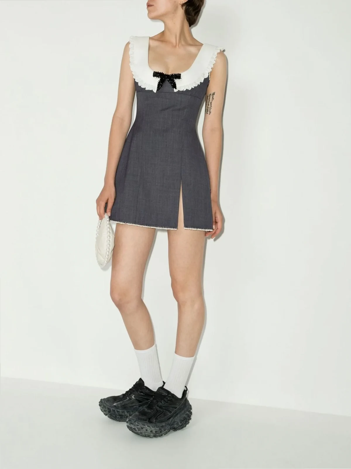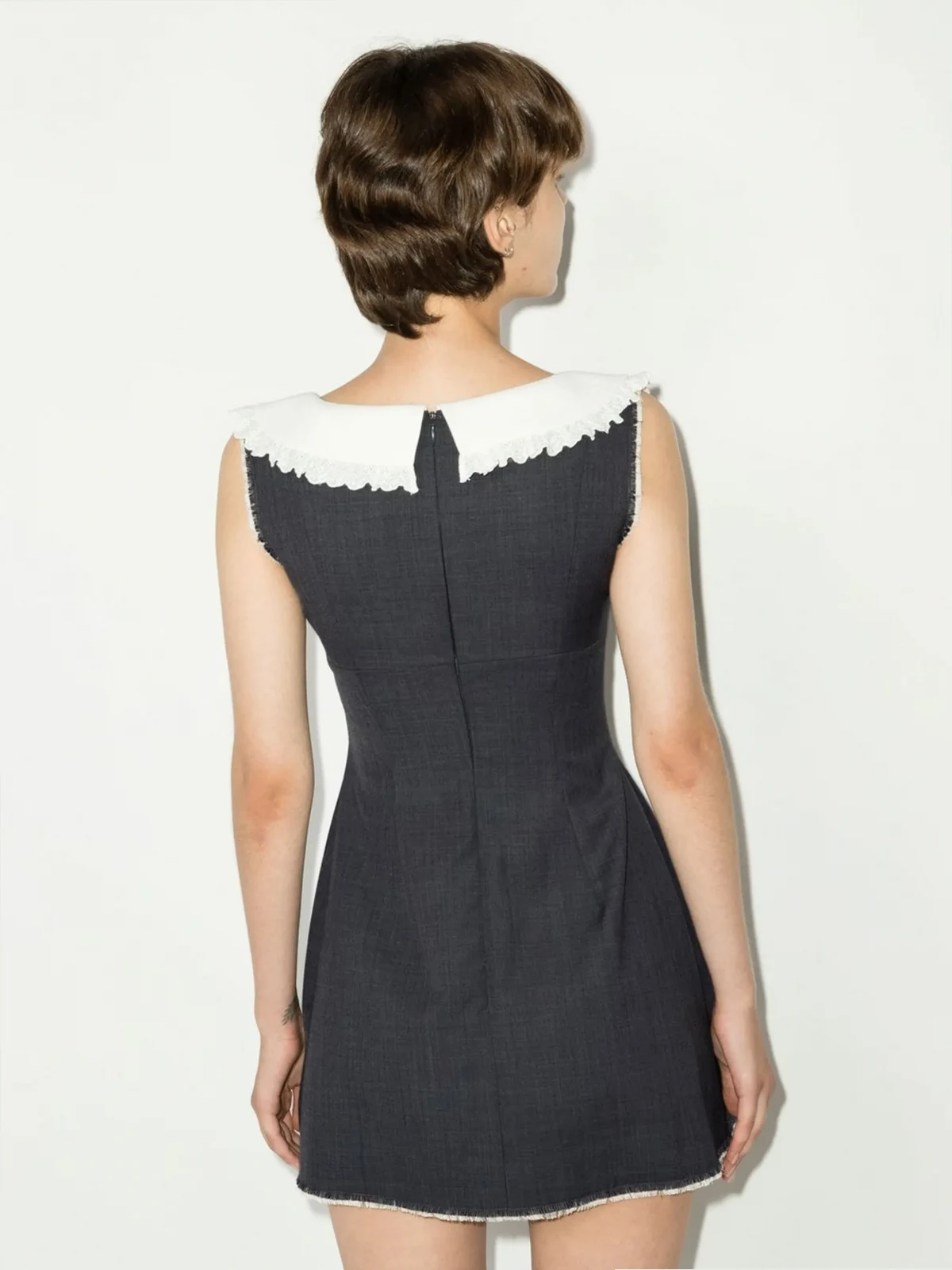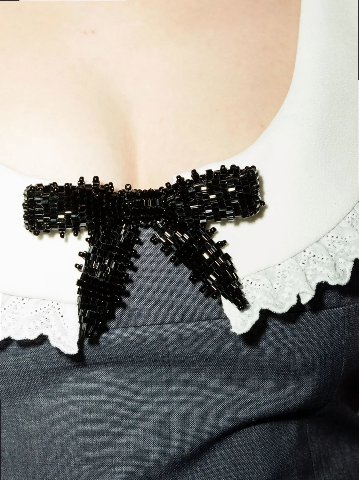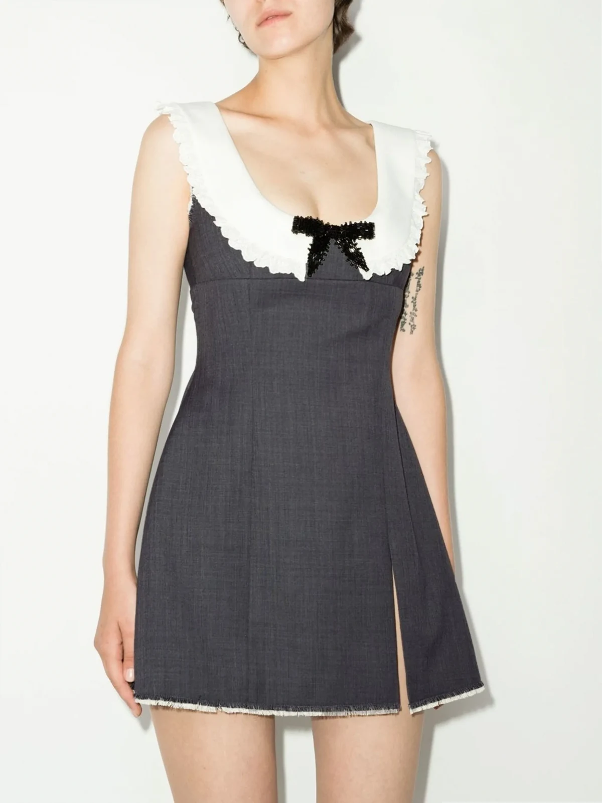 Grau, Wolle, U-Ausschnitt, Schleifendetails, ärmellos.