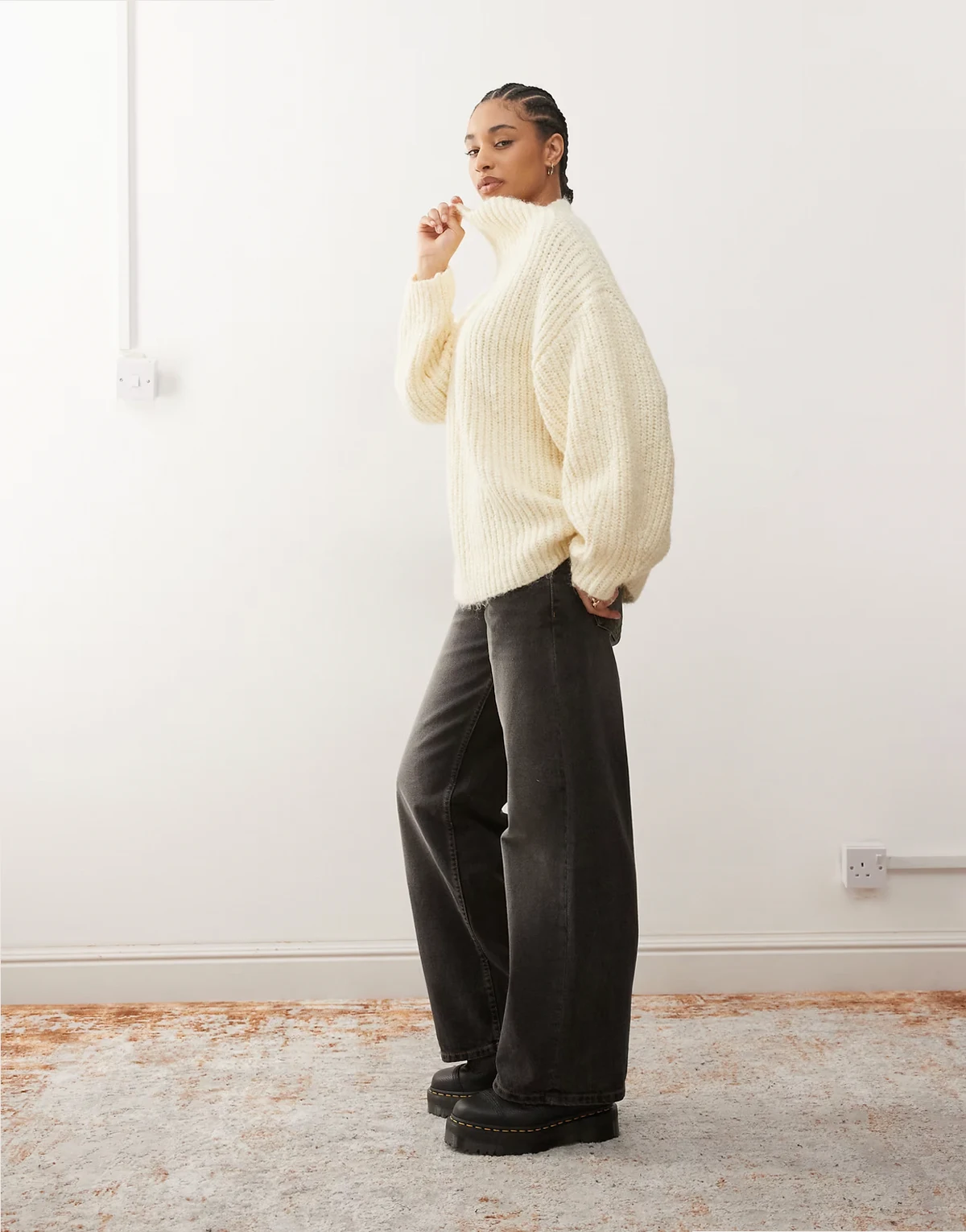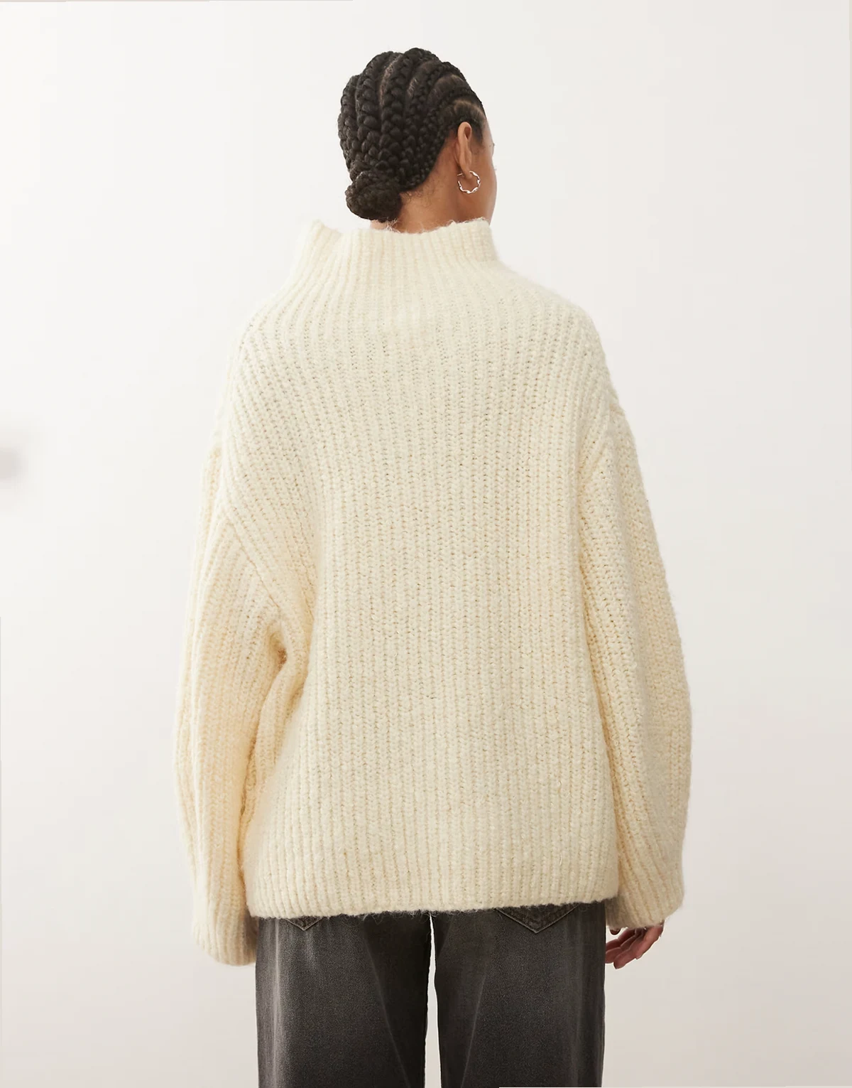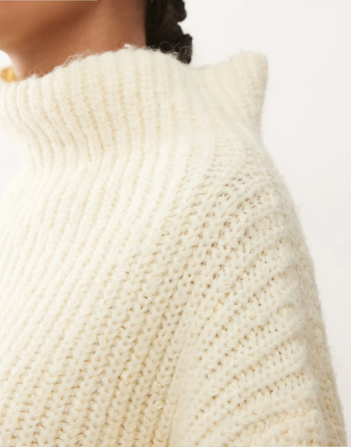 – Pullover aus Grobstrick in blassem Buttermilchgelb mit Stehkragen