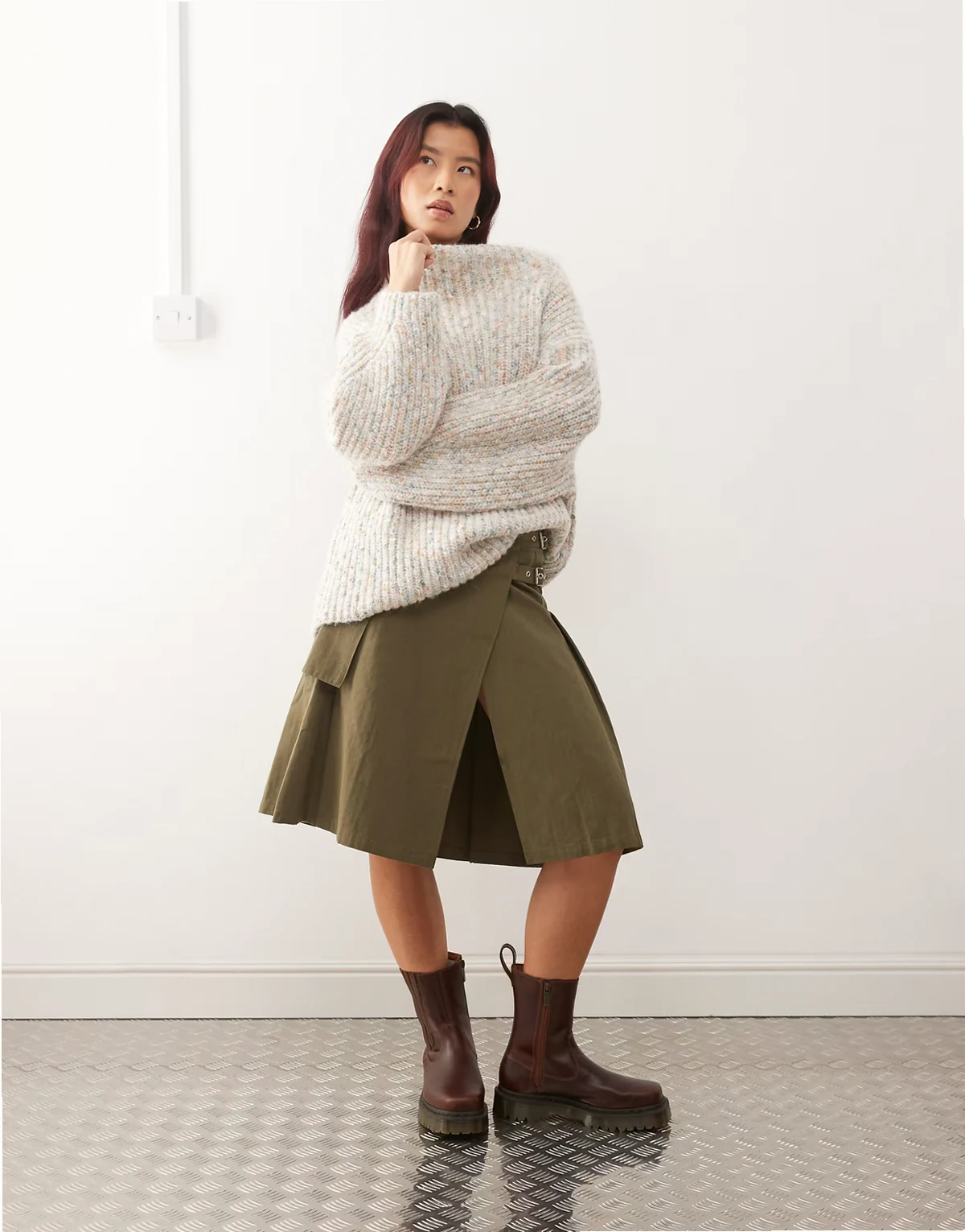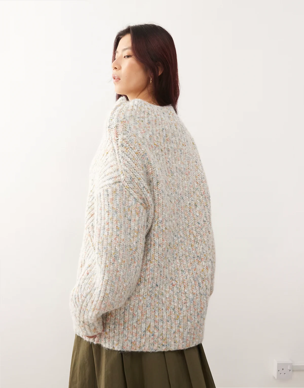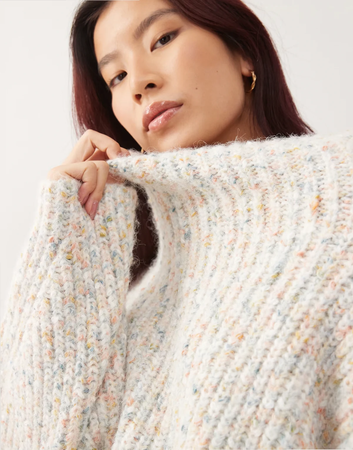 – Pullover aus Grobstrick in gesprenkeltem Pfirsich mit Stehkragen