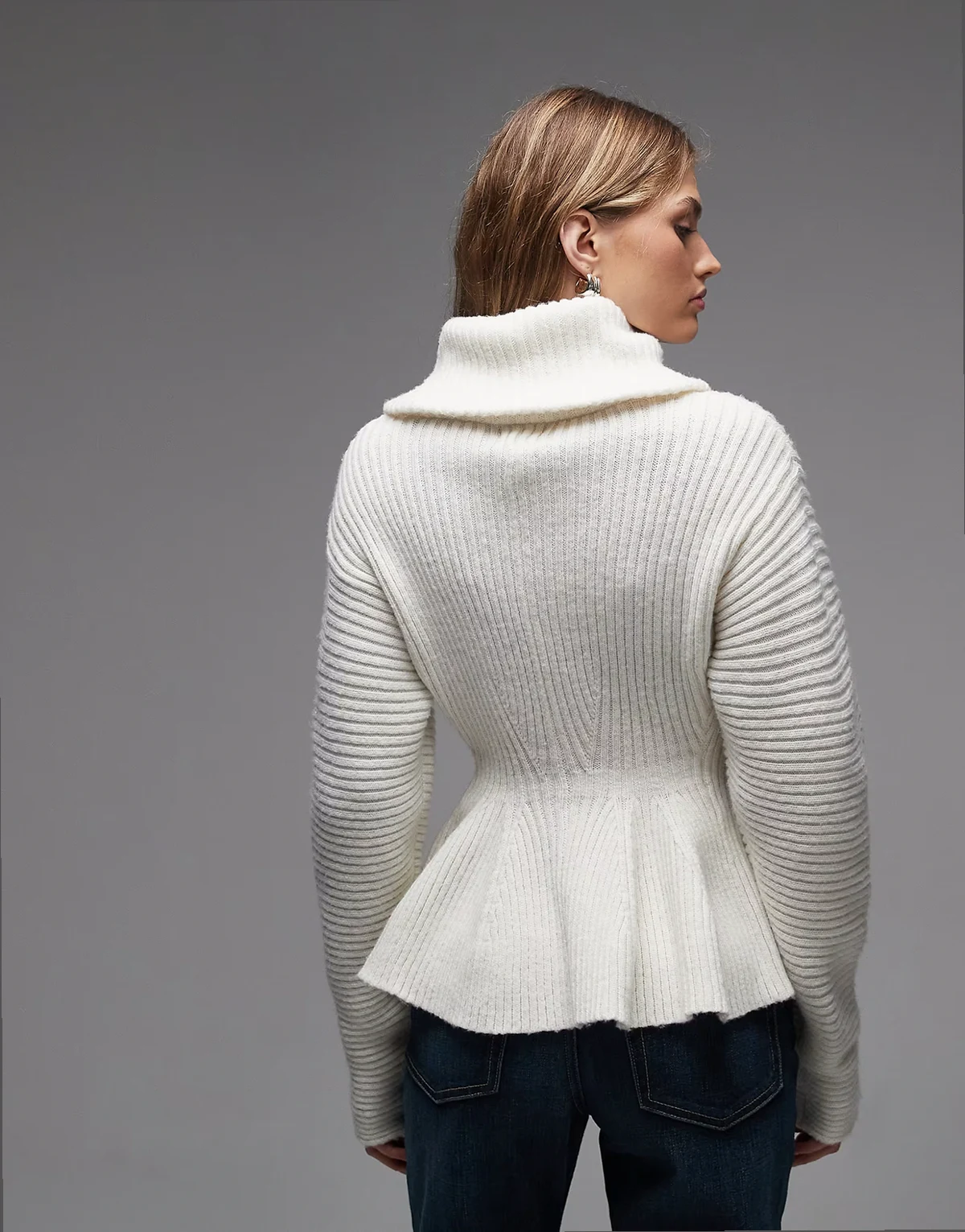 – Strickjacke in Weiß mit Zwei-Wege-Reißverschluss und Schößchensaum
