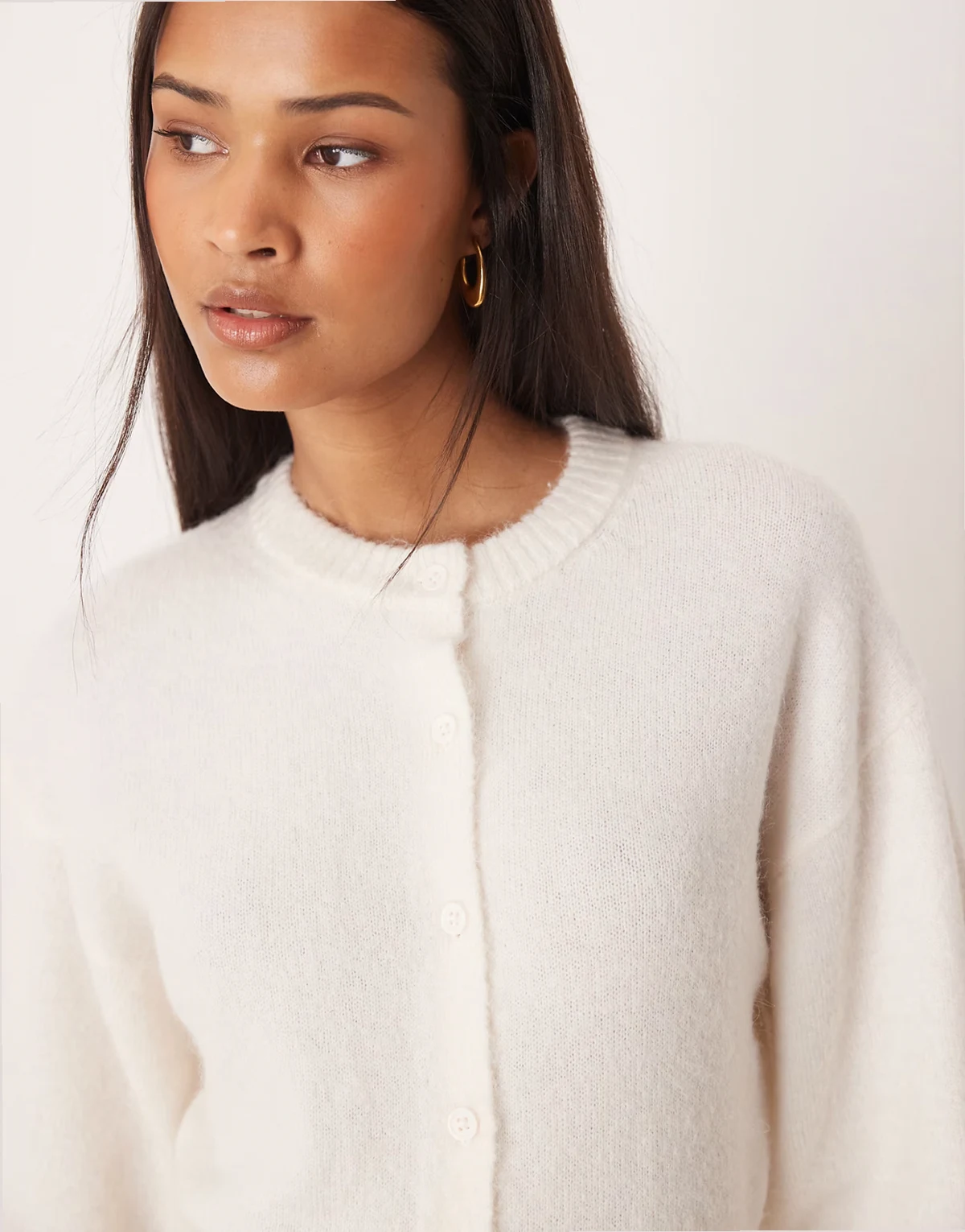 – Kurze Strickjacke aus Alpaka und Wolle in Creme