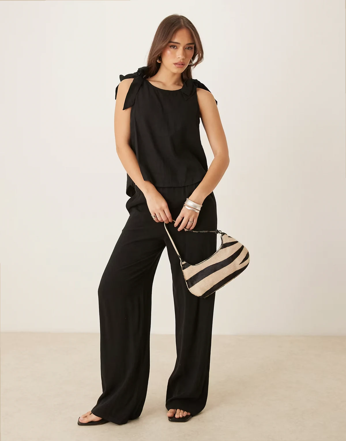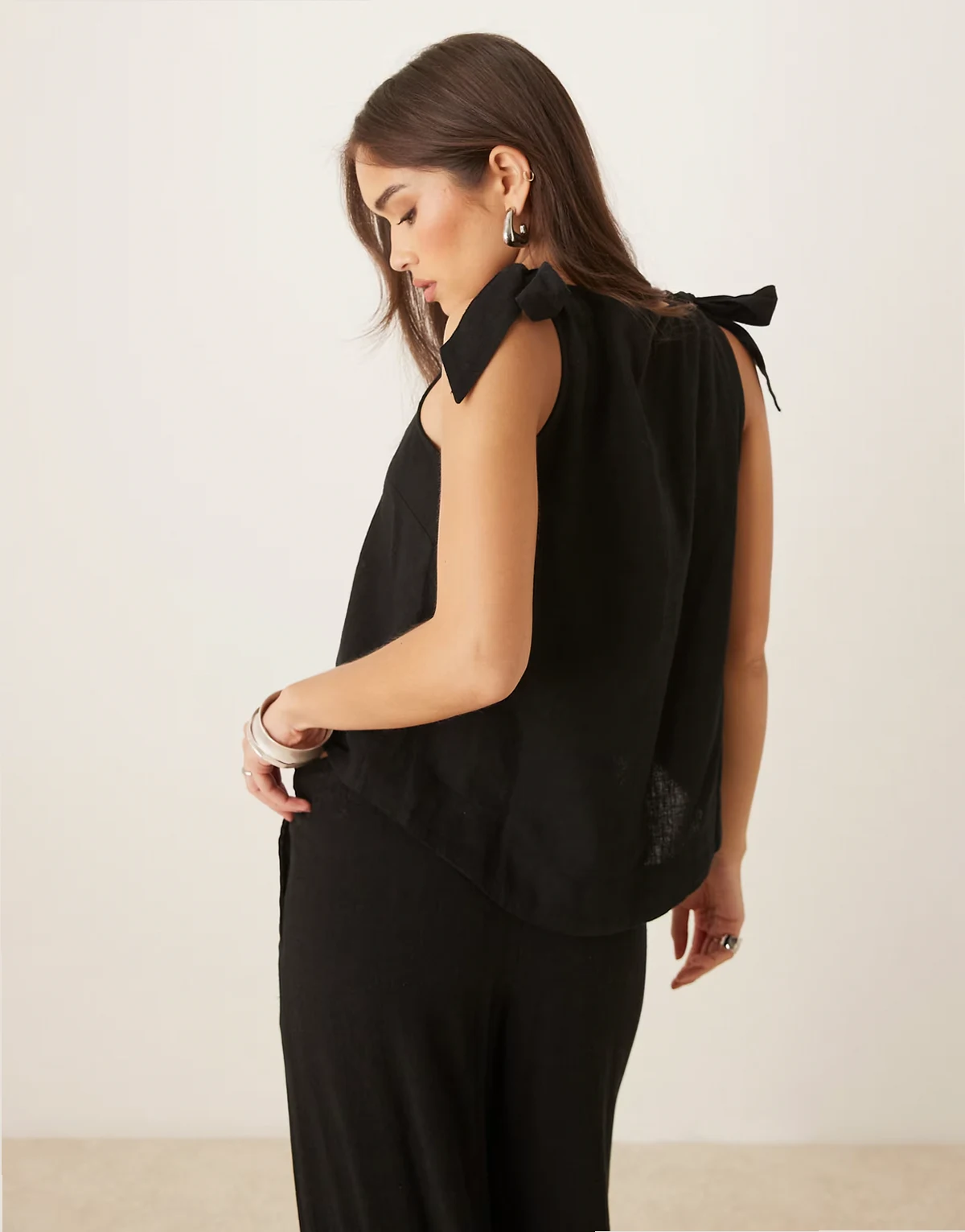 – Stirling – Top aus Leinenmix in Schwarz mit gebundenen Trägern