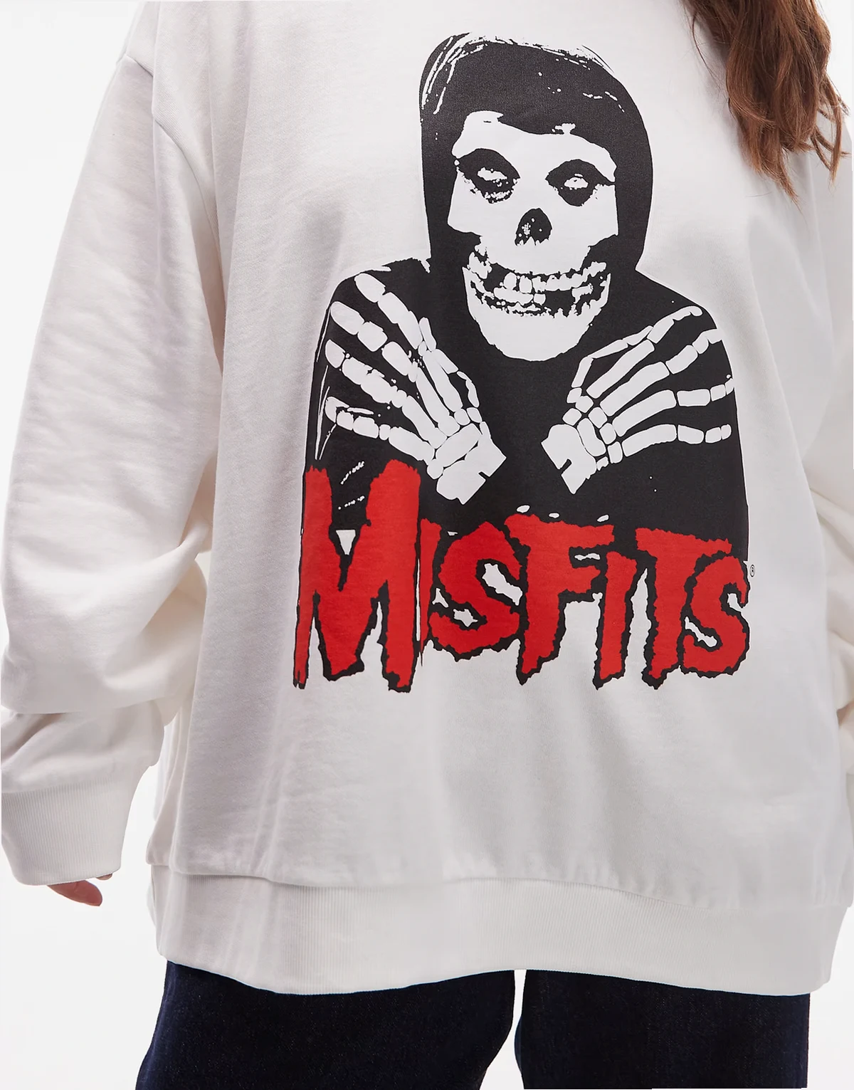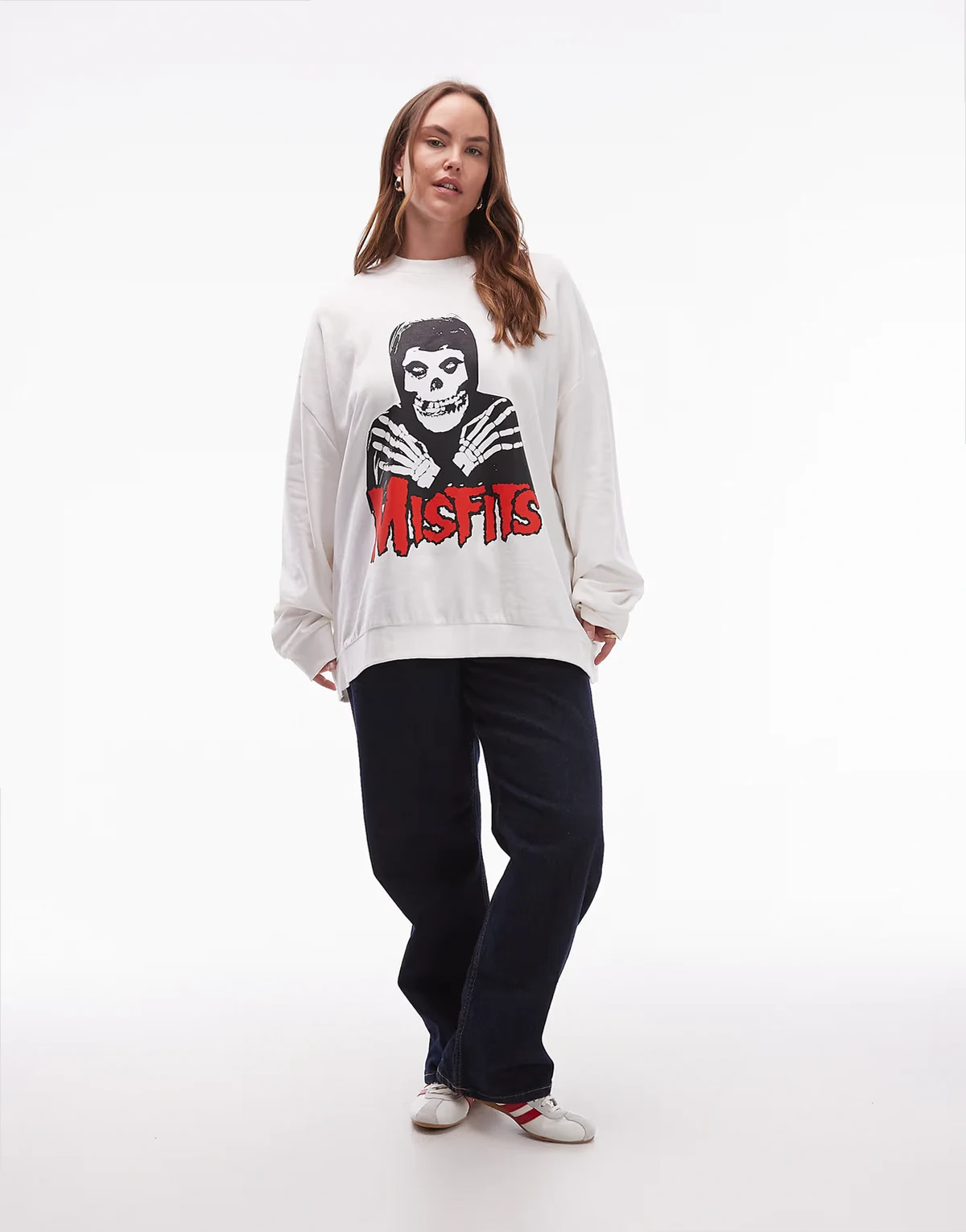 ASOS DESIGN Curve – Oversize-Sweatshirt in Cremeweiß mit „Misfits“-Bandprint