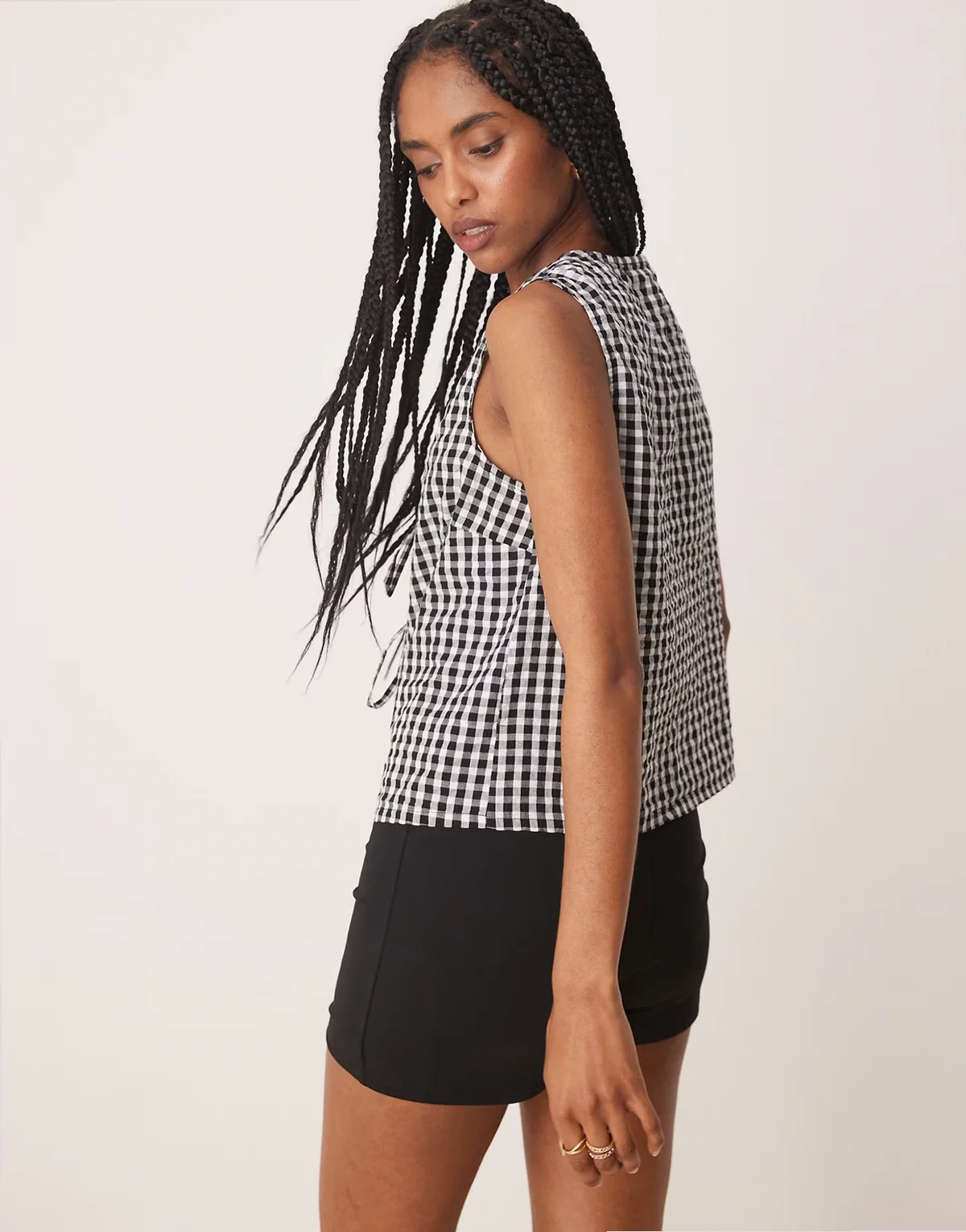 – Tessa – Ärmelloses Oberteil in Schwarz-Weiß mit Karomuster und Bindedetail