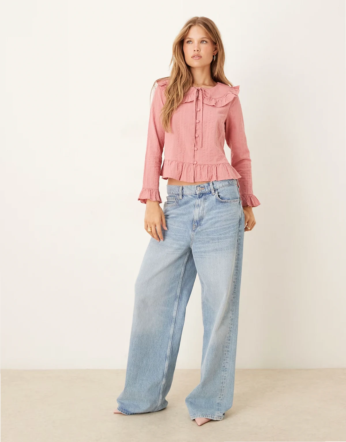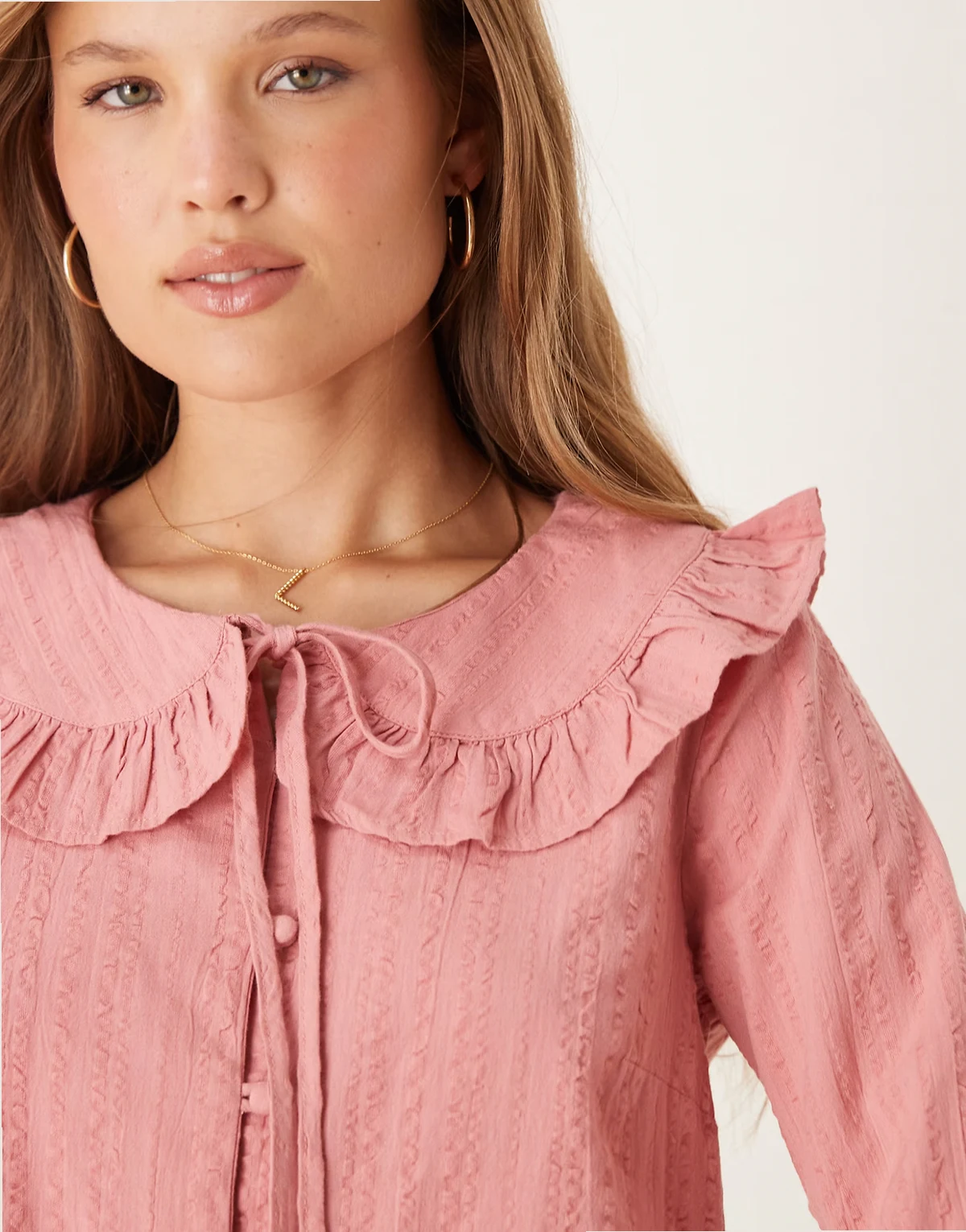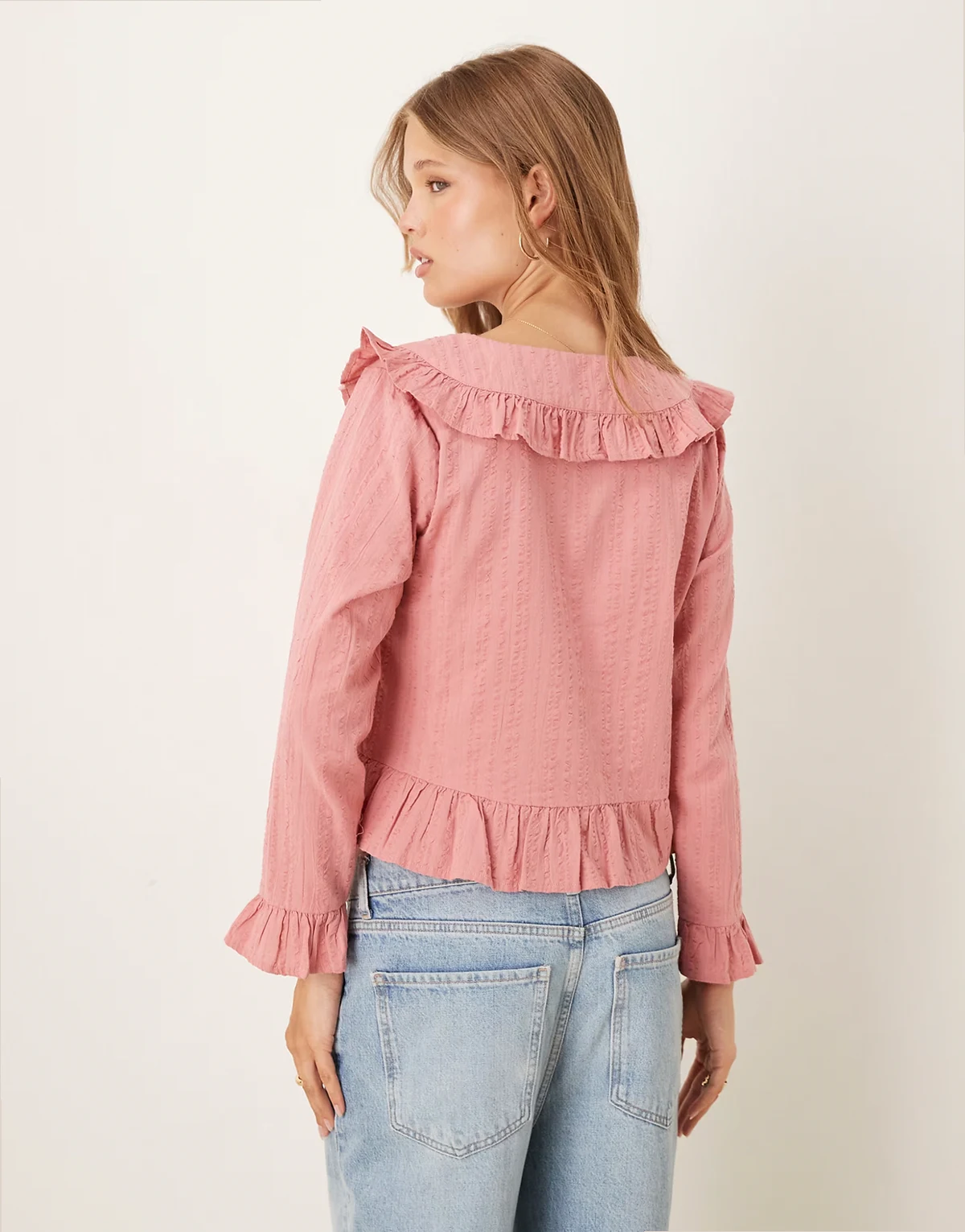 – Britney – Bluse in Altrosa mit Rüschenkante