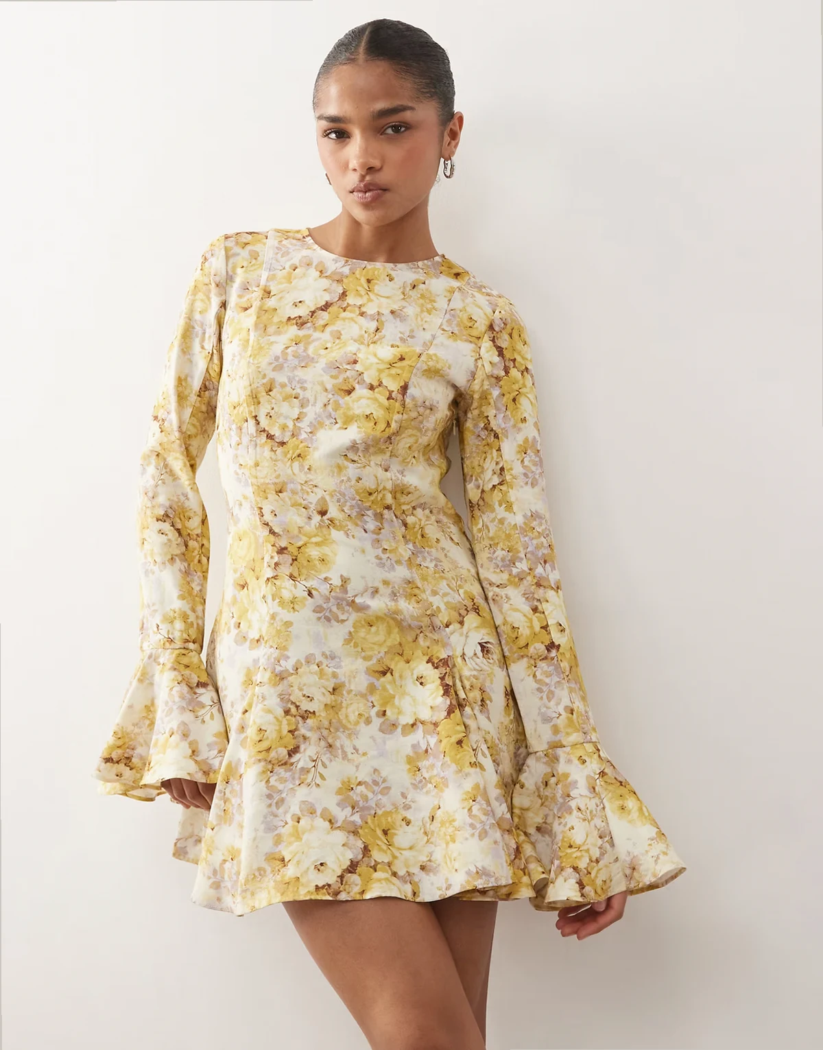 – Langärmliges, luftiges Minikleid mit Blumenmuster