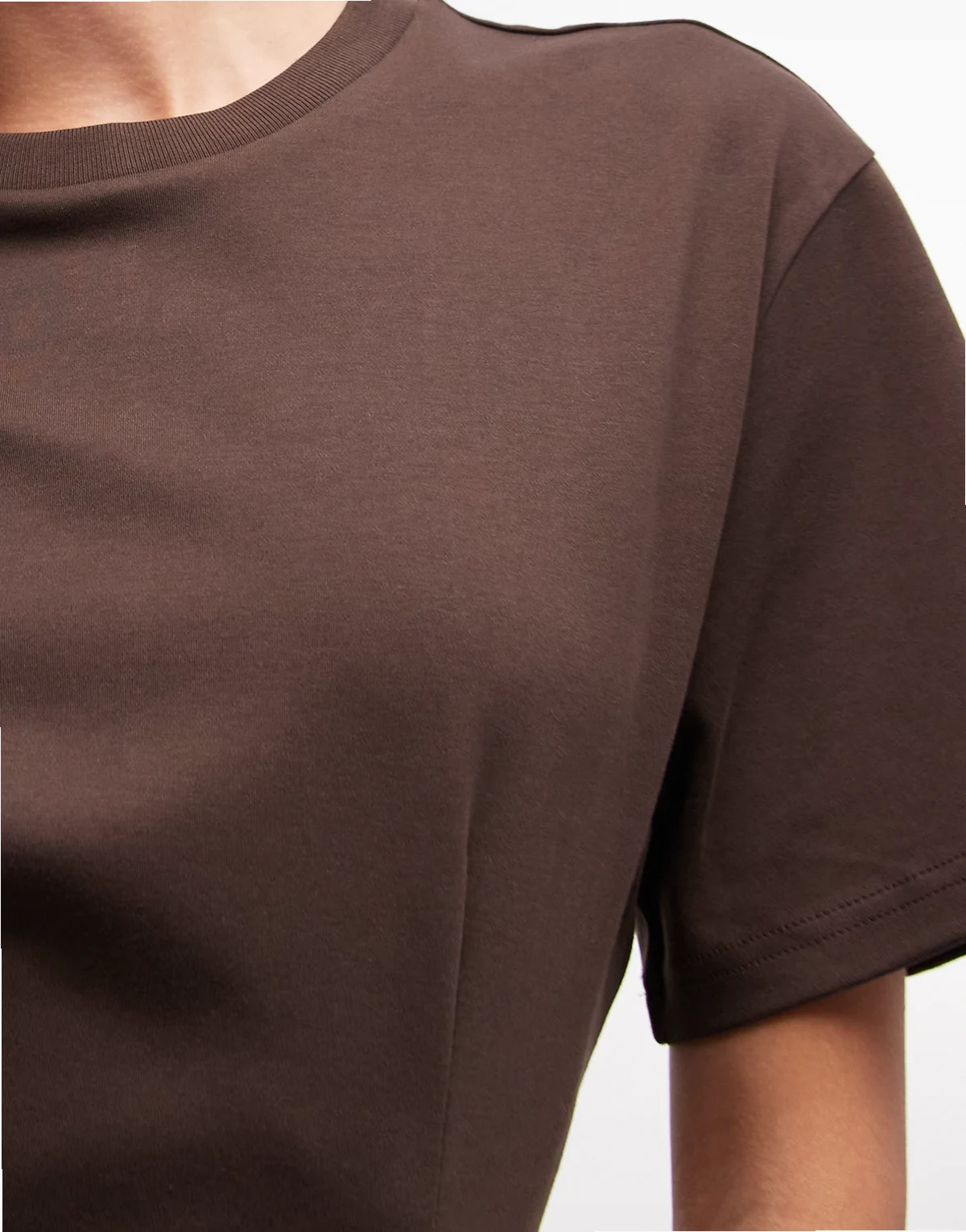– Kurzes T-Shirt-Kleid in Schokobraun mit geraffter Taille