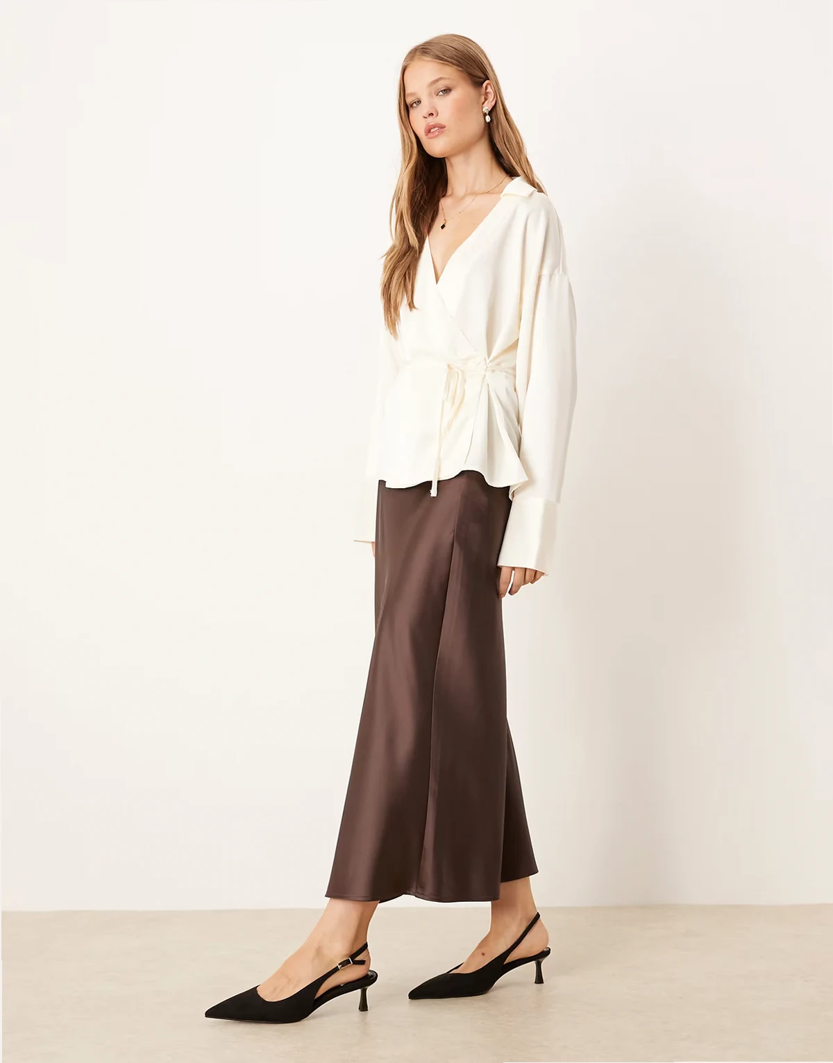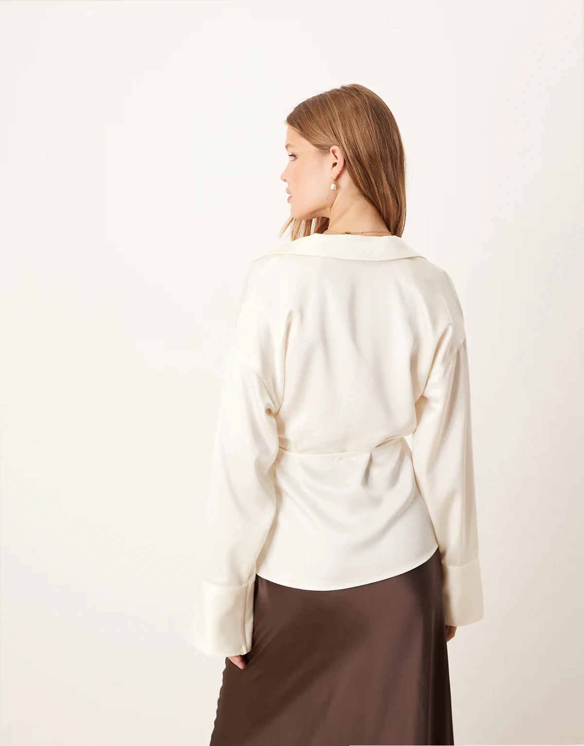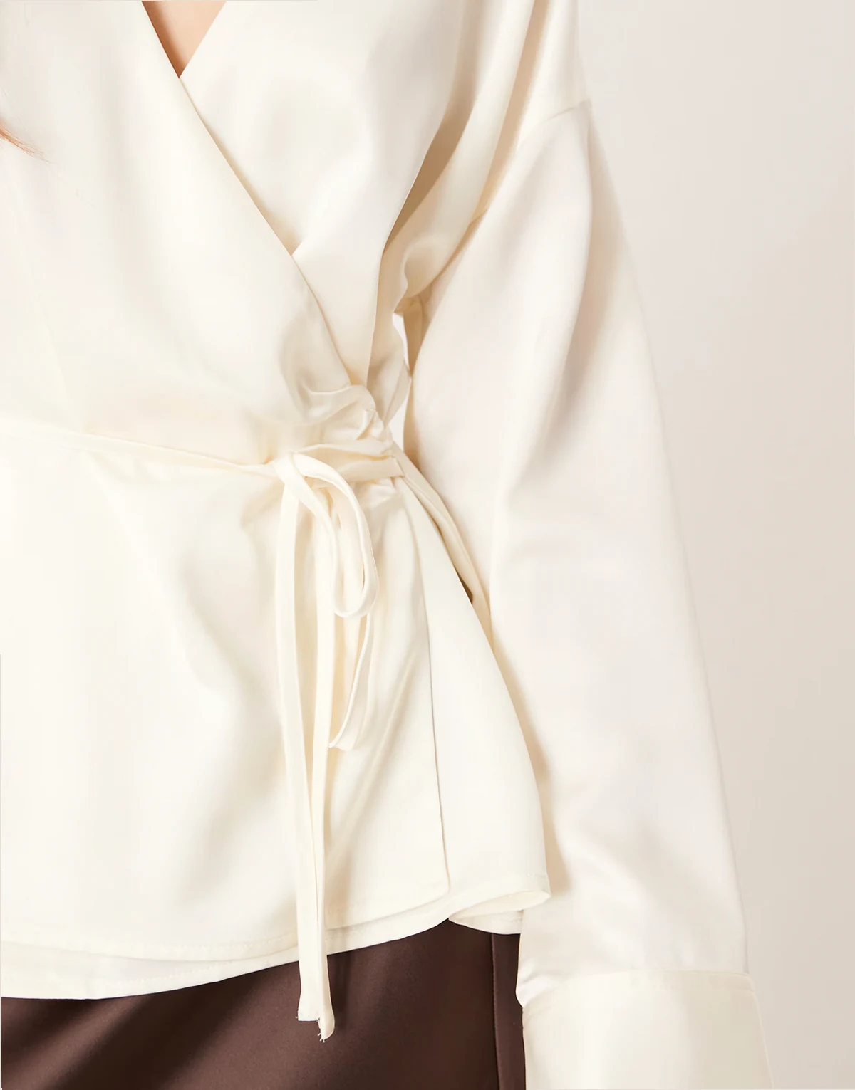 – Satin-Hemdbluse in Cremeweiß mit gebundener Vorderseite