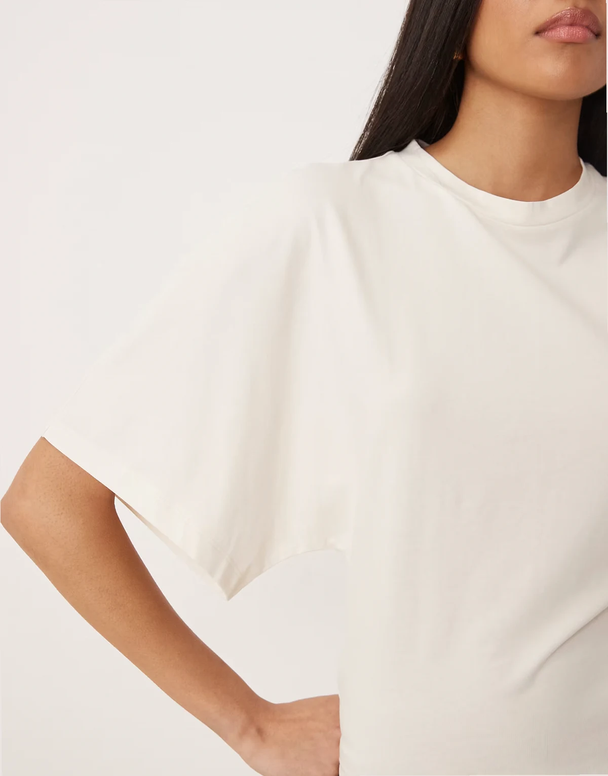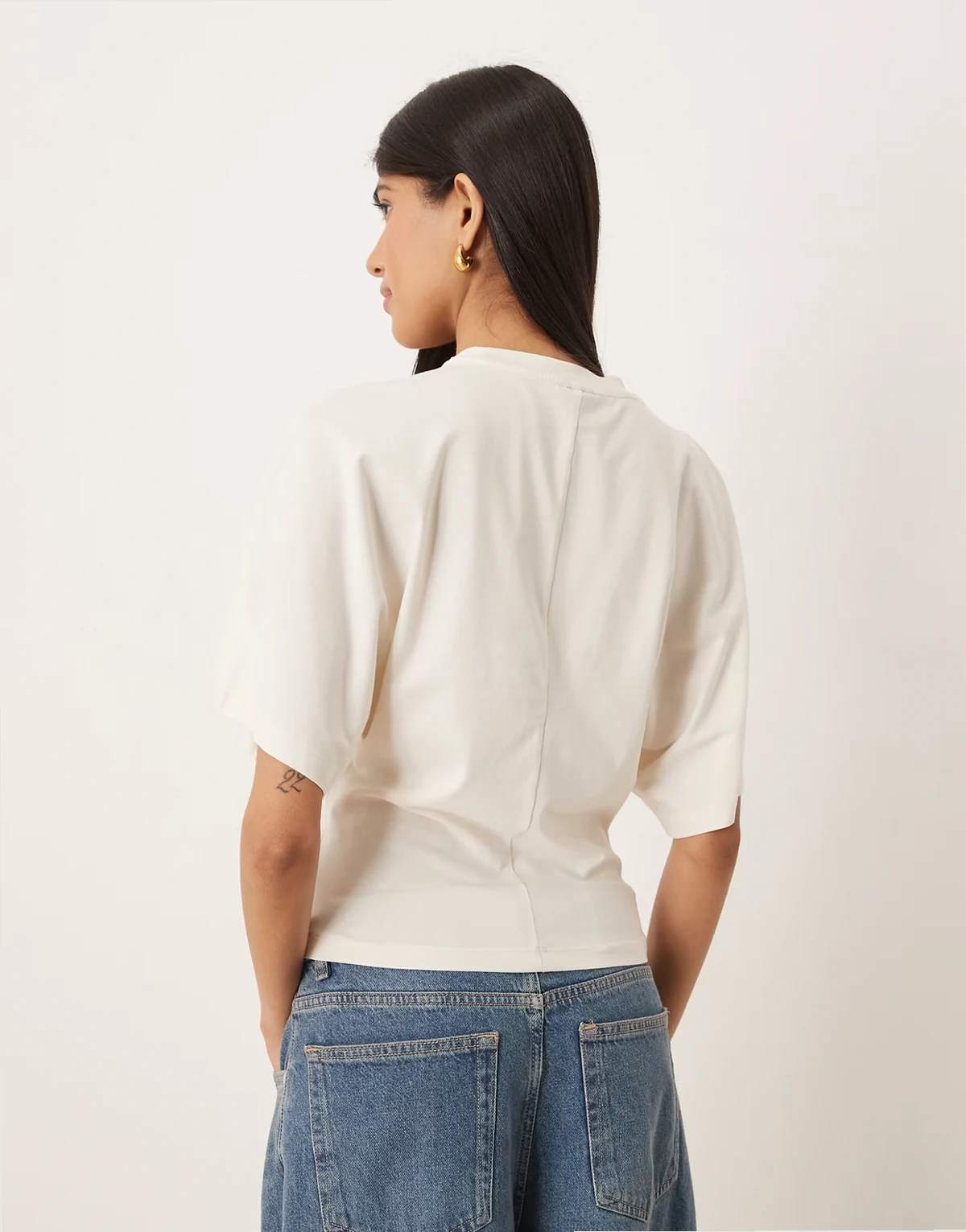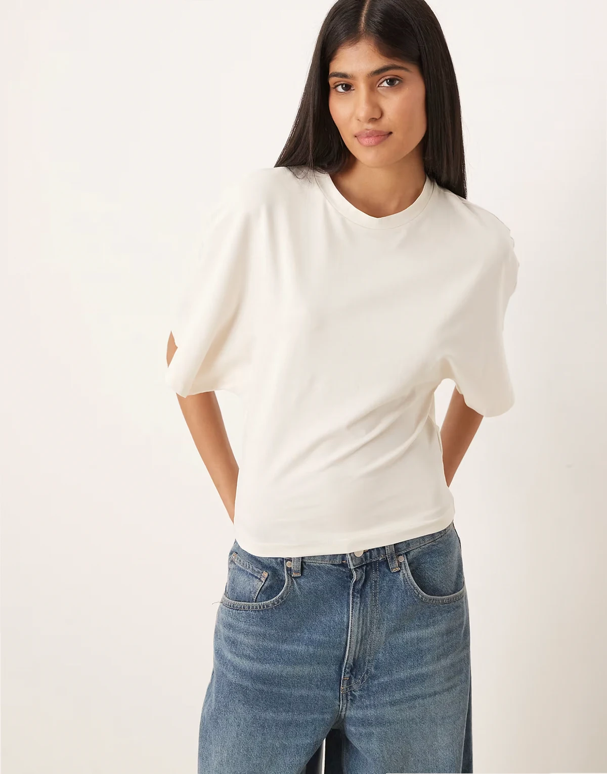 – Kurzärmliges Oberteil in Weiß mit geraffter Taille