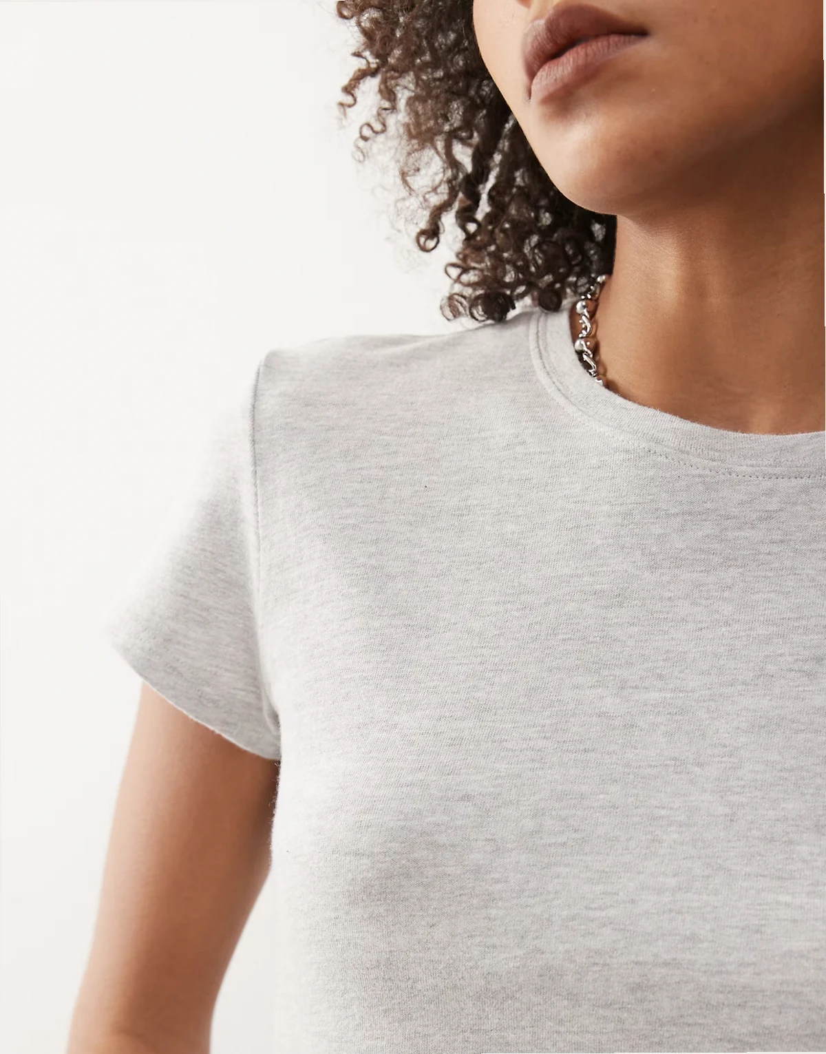 – Knapp geschnittenes T-Shirt im 90er-Stil in meliertem Grau