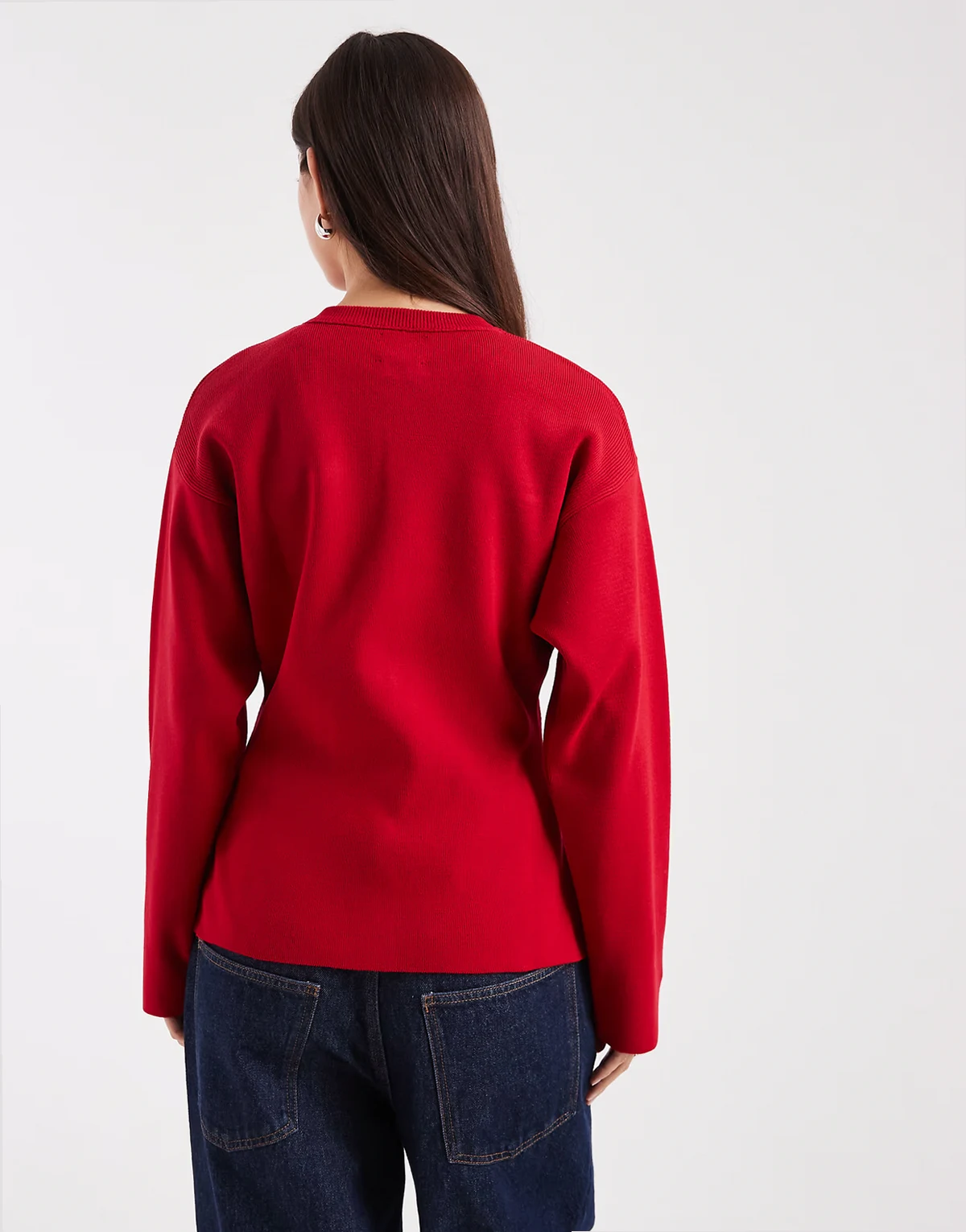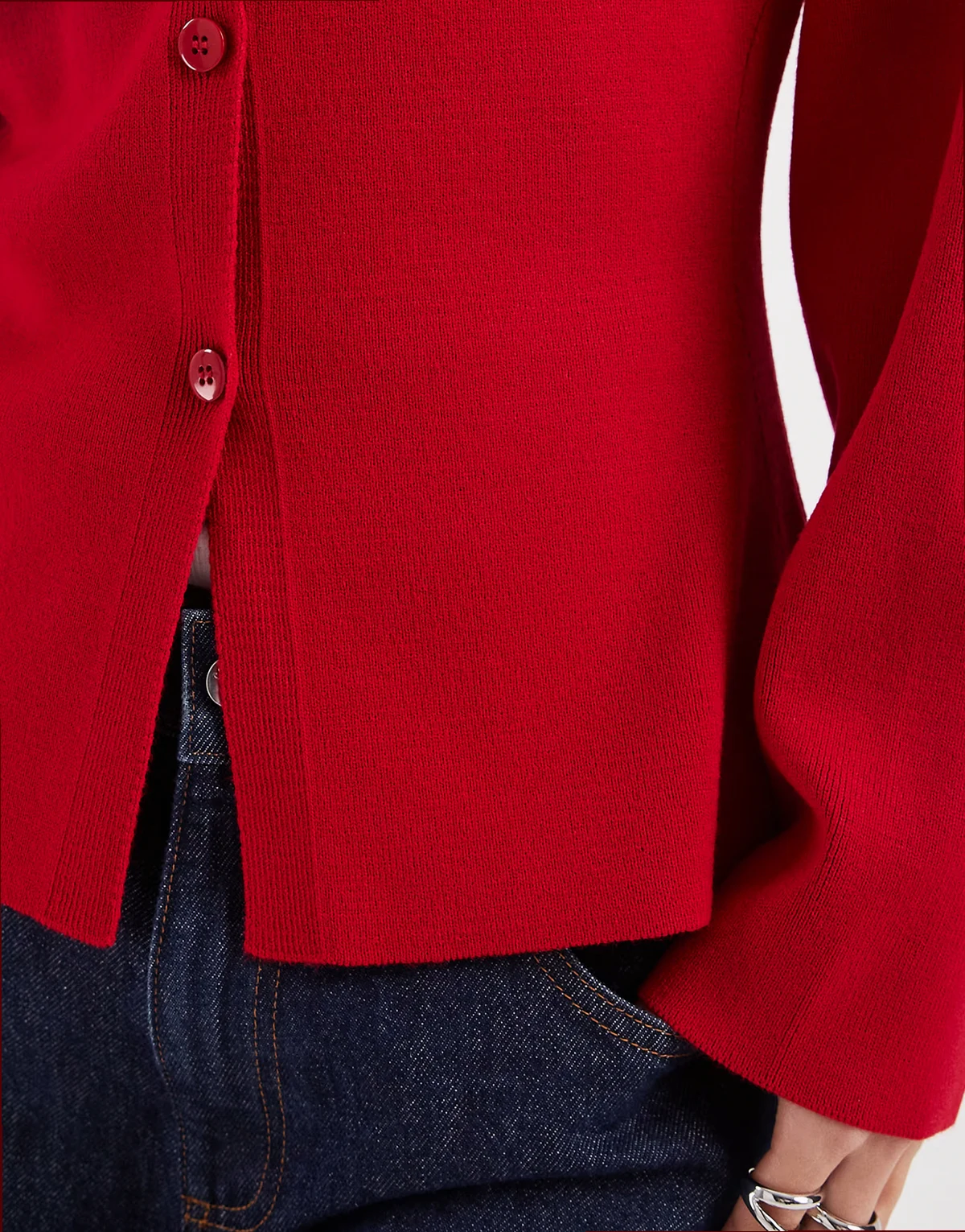– Strukturierte Strickjacke in Rot mit Rundhalsausschnitt
