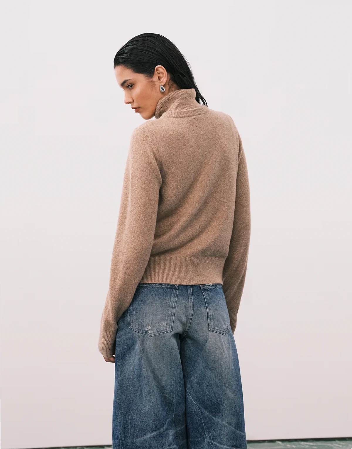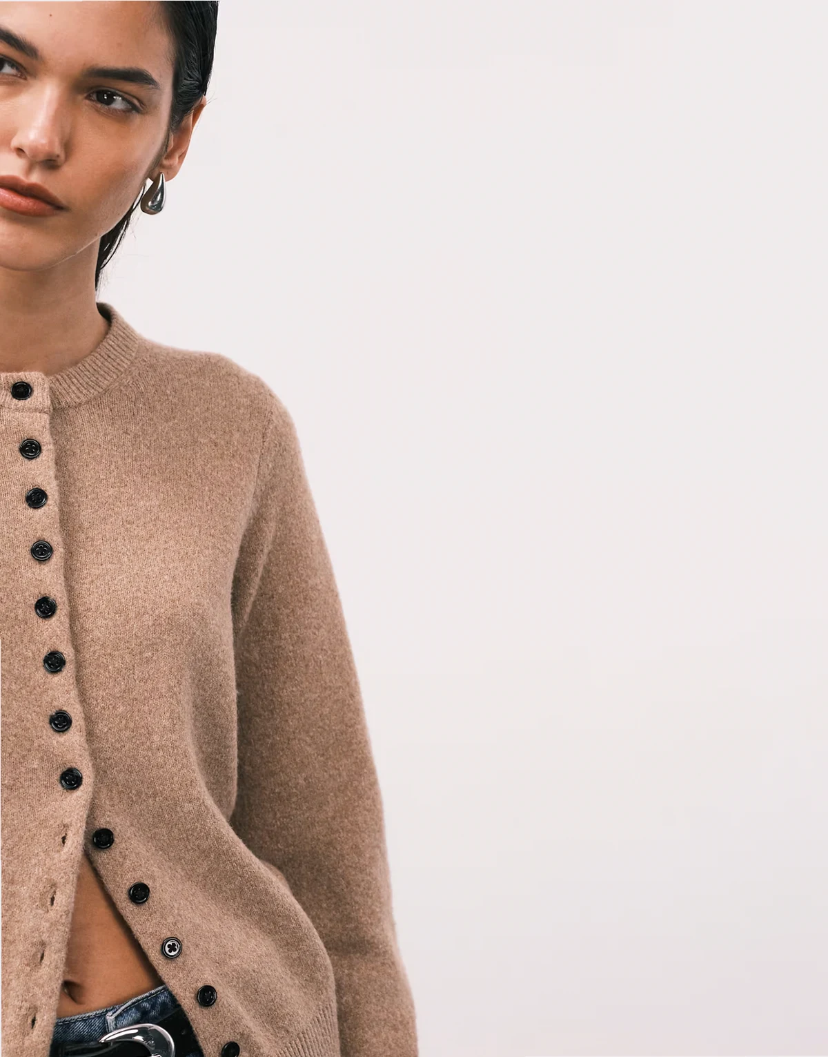 – Mittelschwere, figurbetonte Strickjacke in Camel, Kombiteil