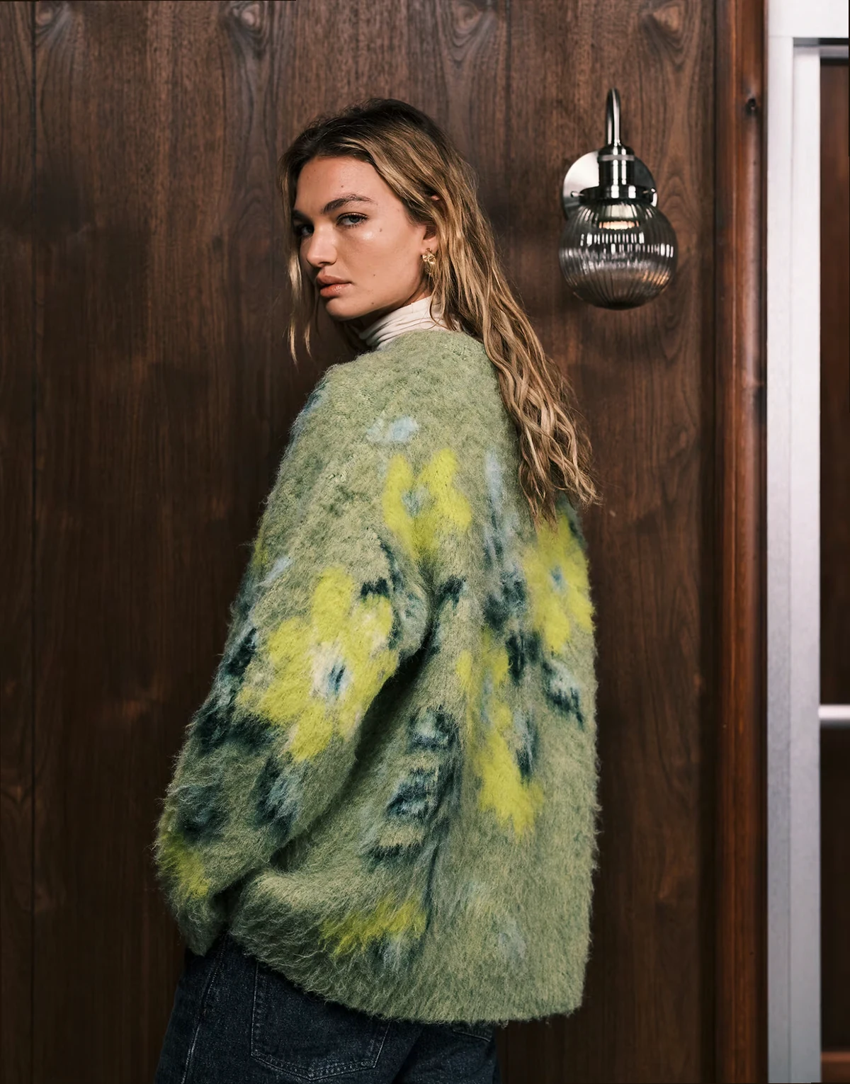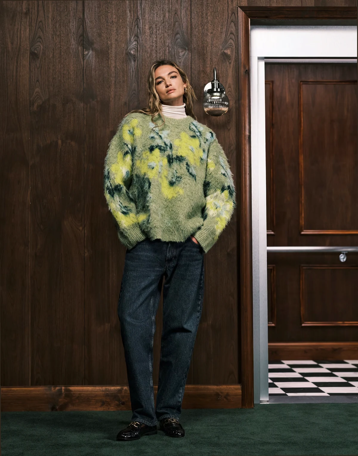 – Aufgerauter Pullover in Salbei mit auffälligem Blumenmotiv