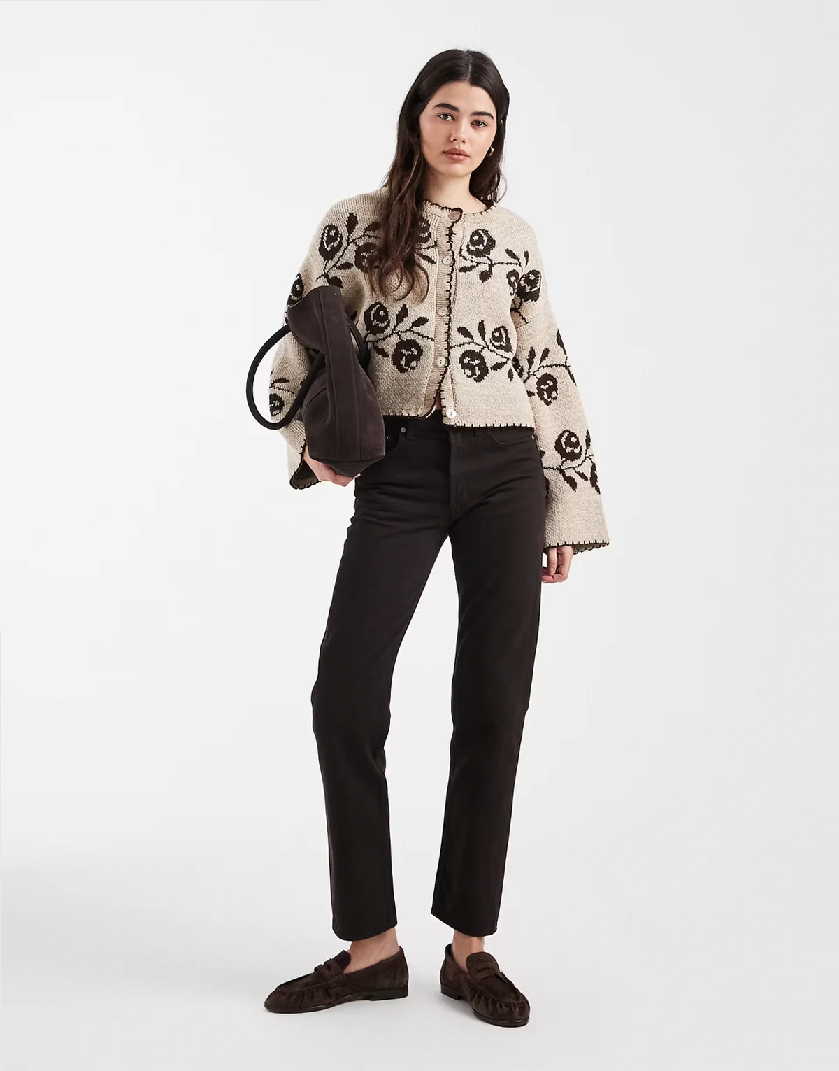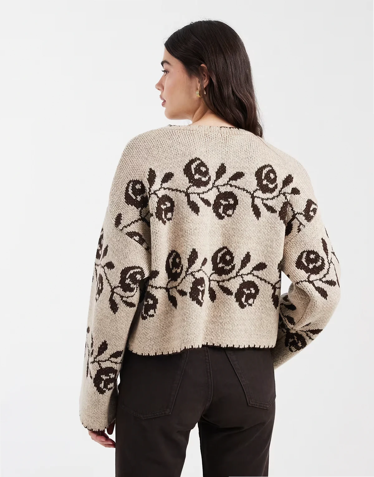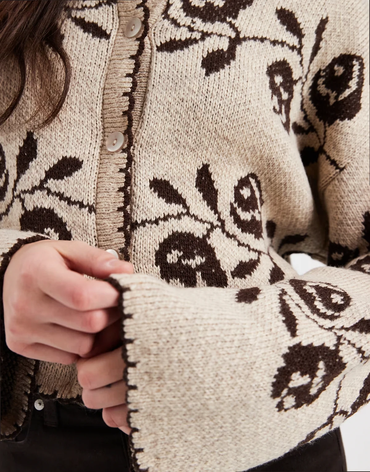 – Strickjacke mit Deckenstich und Blumenmuster