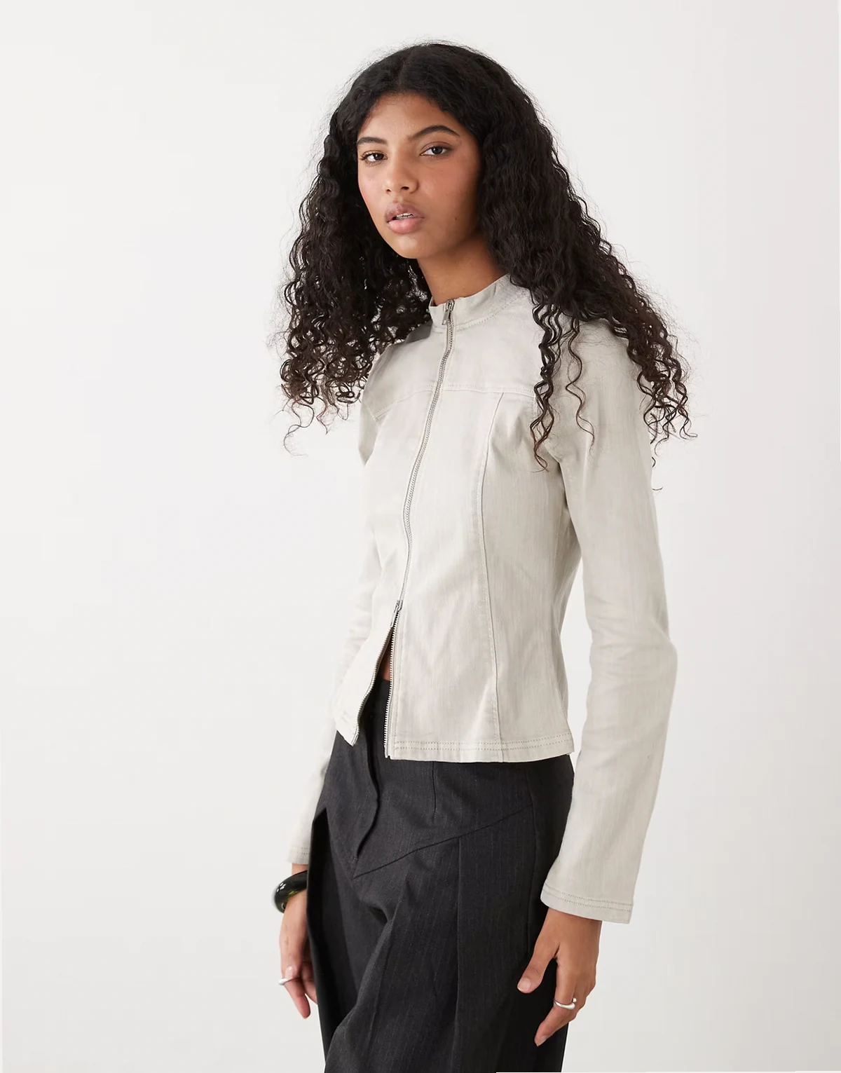 – Figurbetonte Jacke in hellem Maulwurfbraun mit Reißverschluss