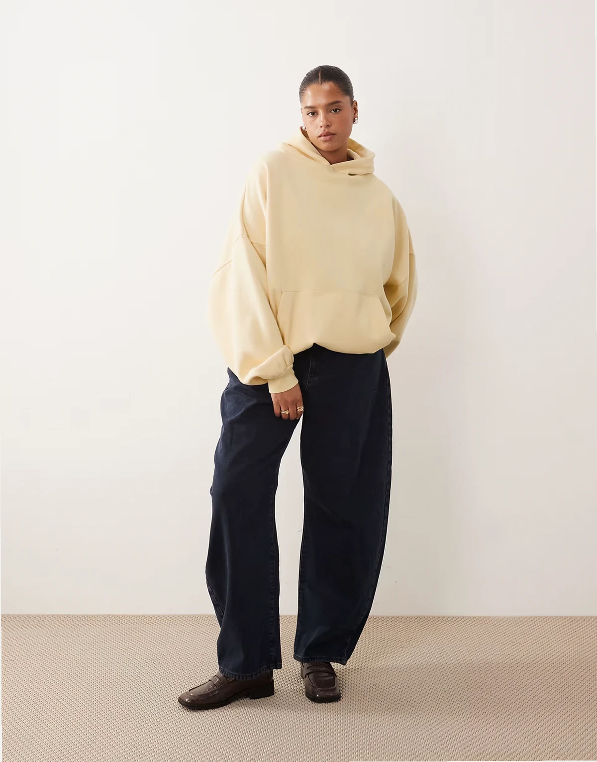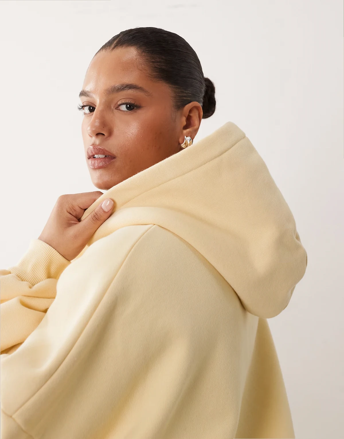 Curve – Oversize-Kapuzenpullover in schwerer Premium-Qualität in Buttermilchgelb