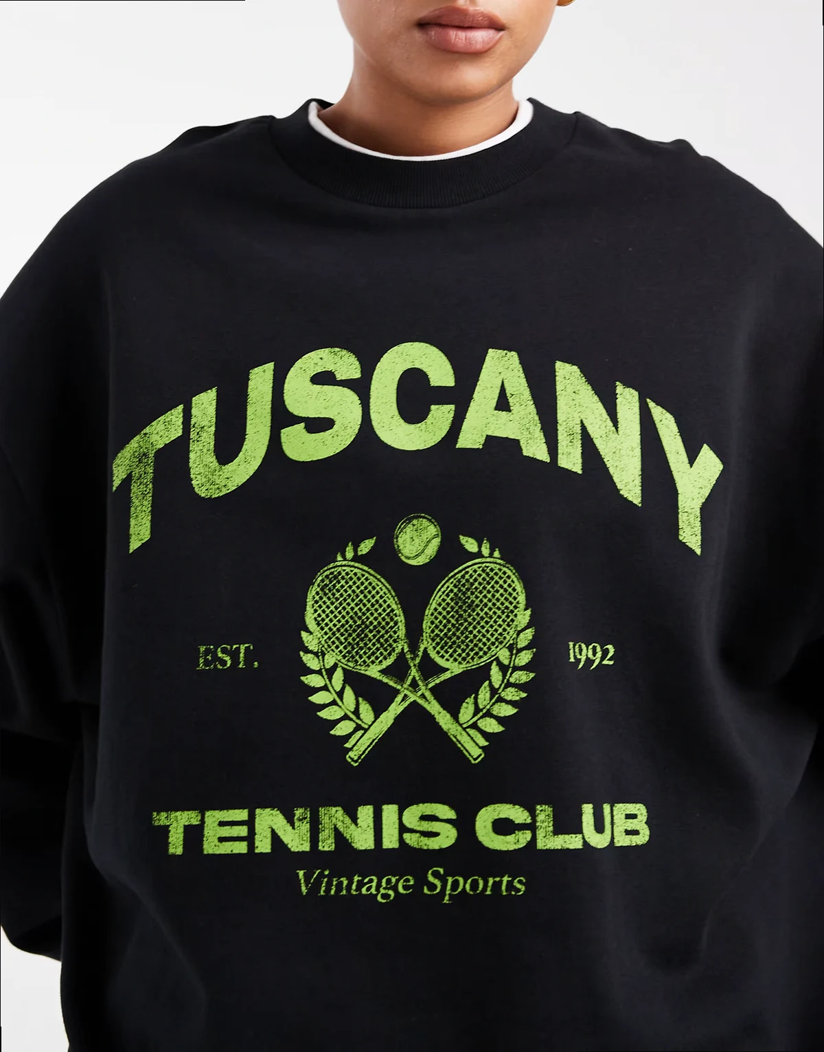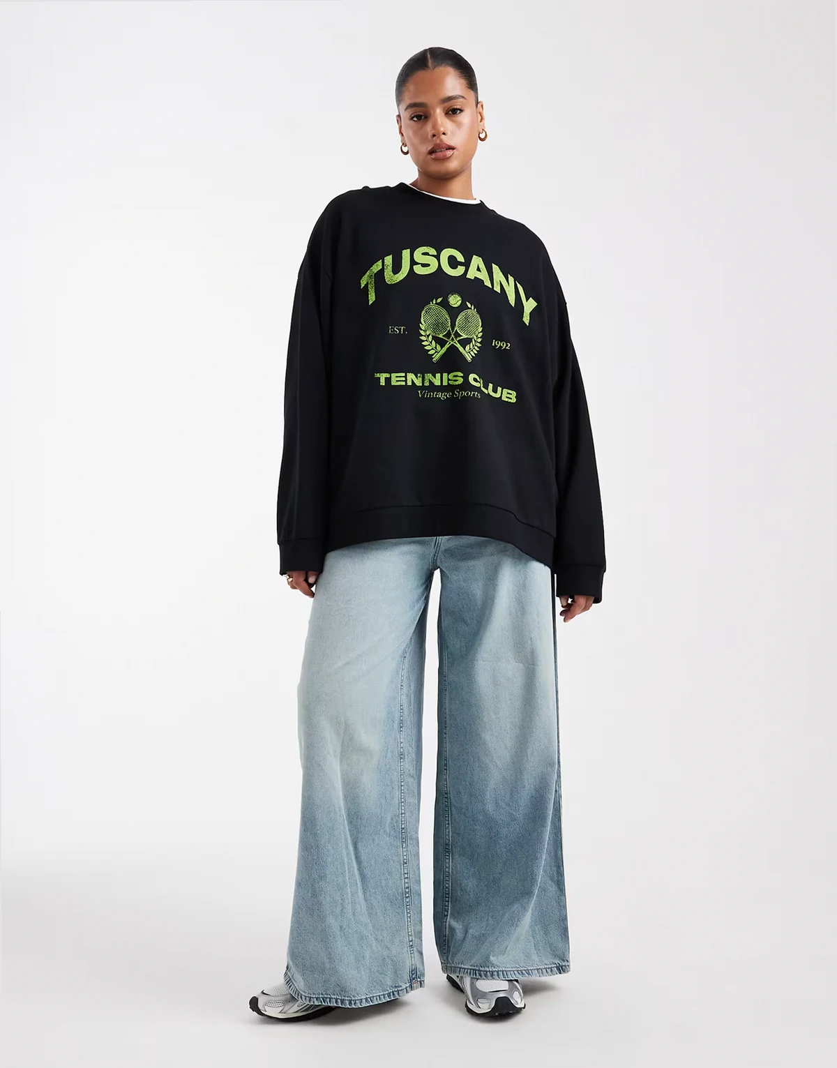 ASOS DESIGN Curve – Oversize-Sweatshirt in Schwarz mit „Tuscany“-Print
