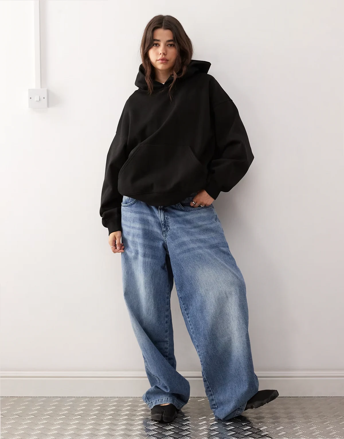 – Schwerer Jersey-Kapuzenpullover in Schwarz im Oversized Fit