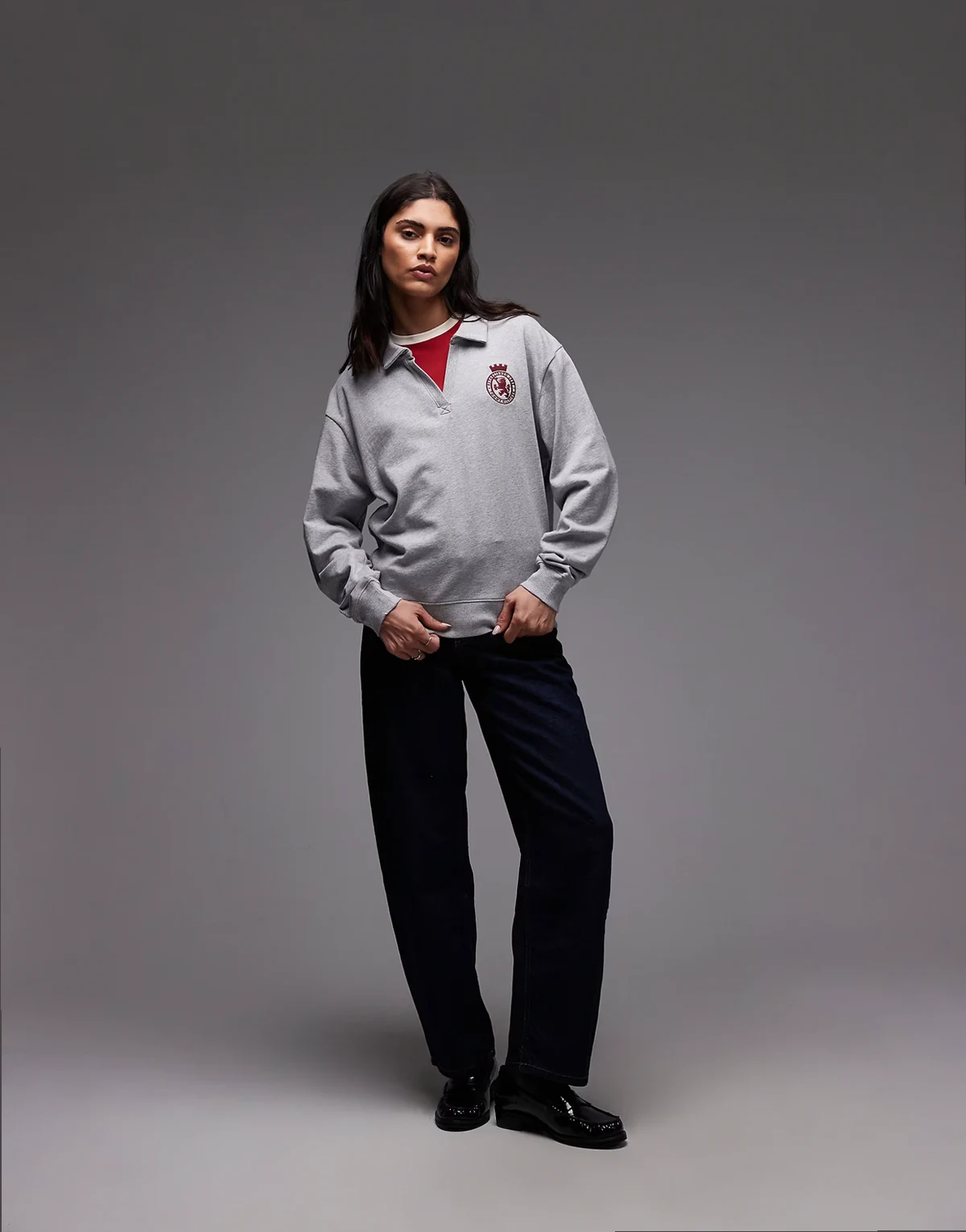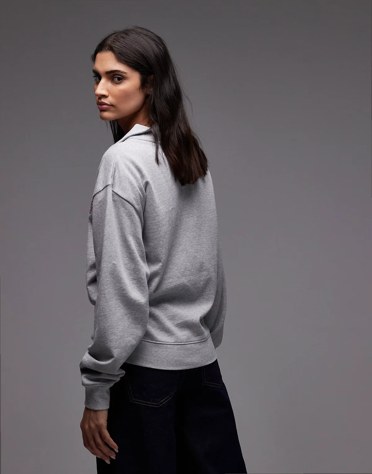 – Lounge-Sweatshirt in meliertem Grau mit Wappen-Logo