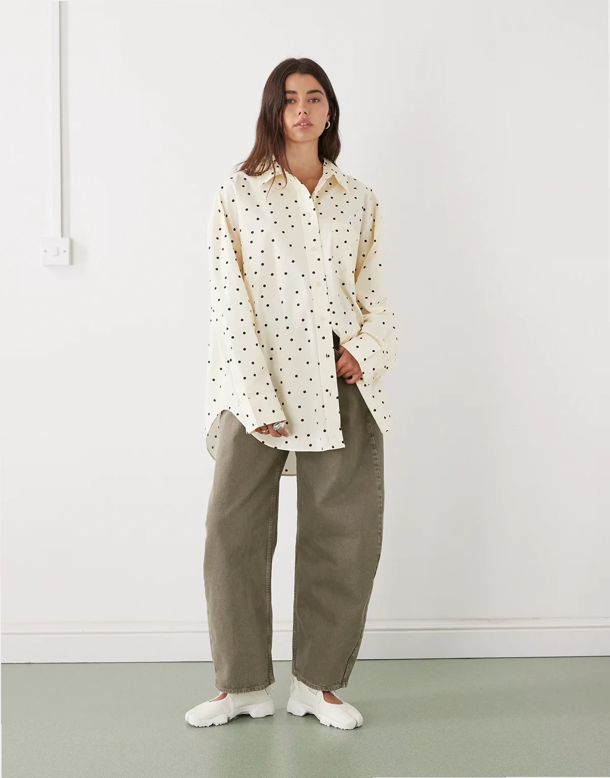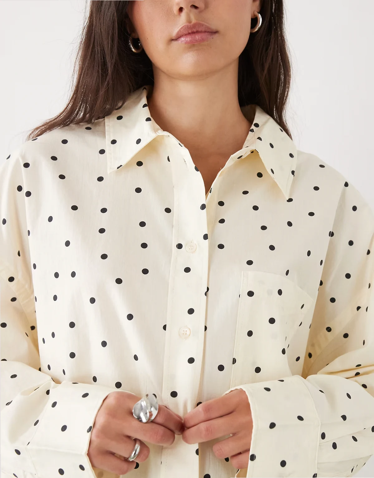 – Oversize-Hemd in Zitronengelb mit Polka Dots