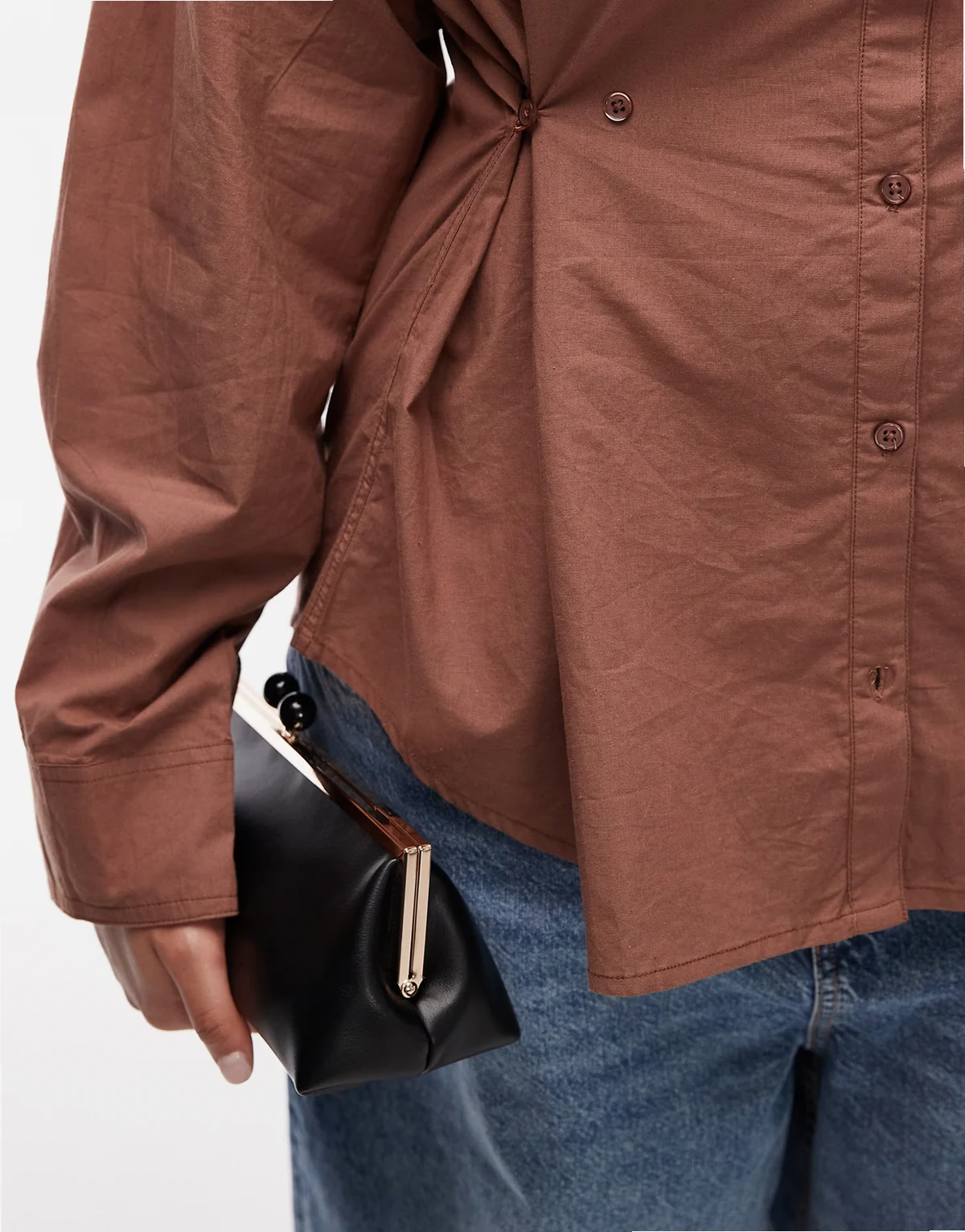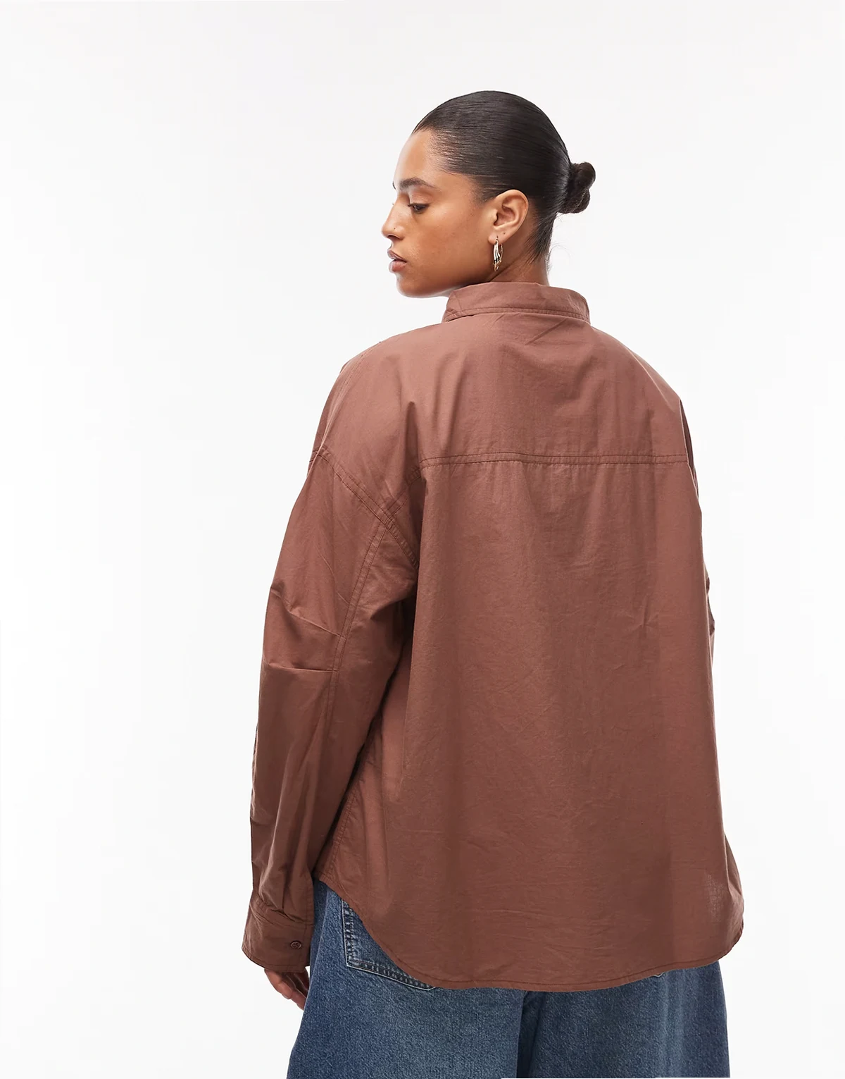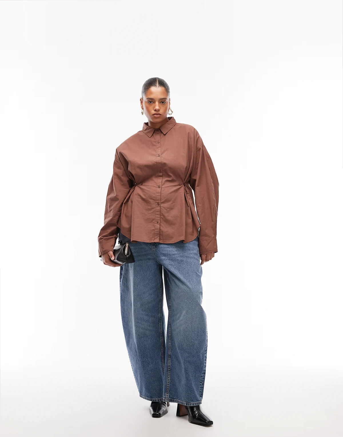 ASOS DESIGN Curve – Tailliertes Hemd in Braun mit Knopfdetail
