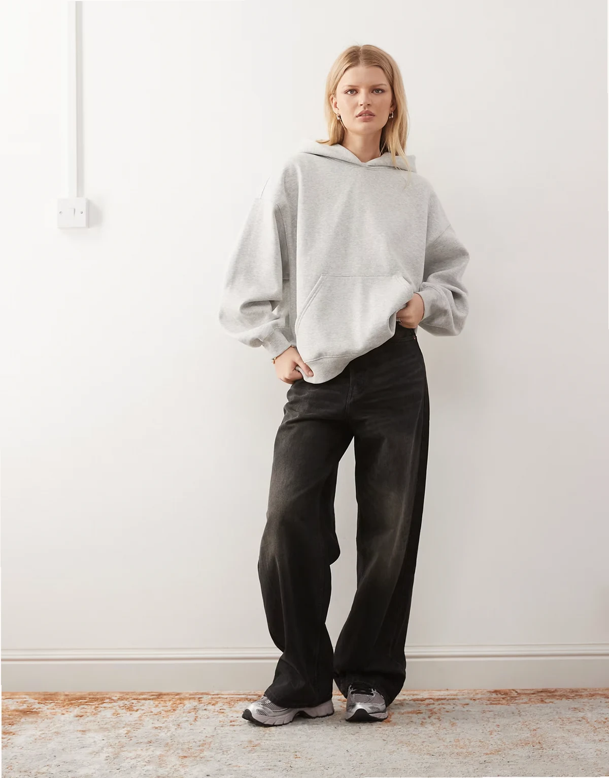 – Oversize-Kapuzenpullover aus schwerem Jersey in Grau meliert