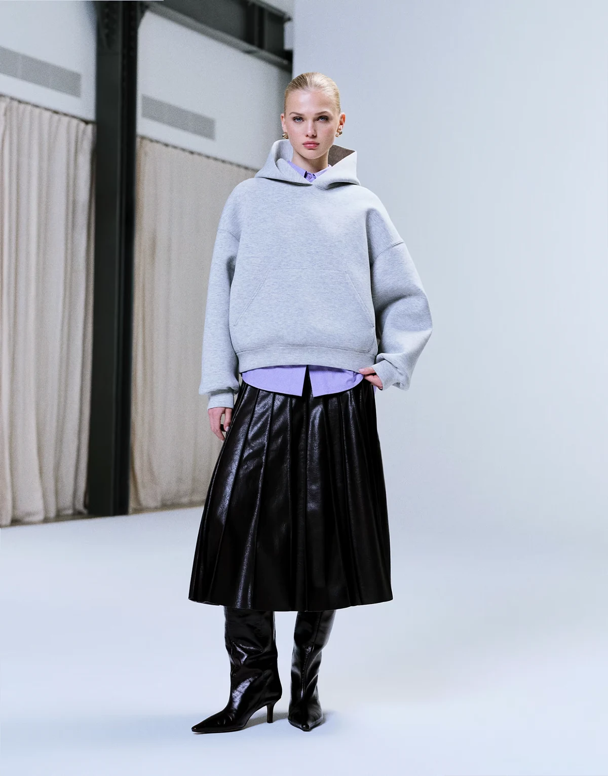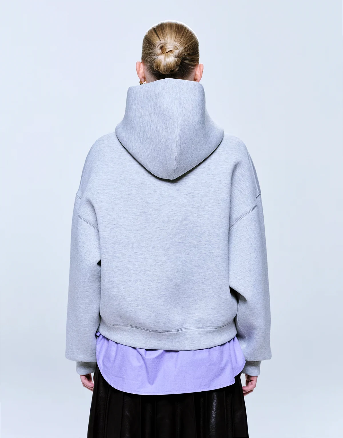 – Oversize-Kapuzenpullover aus neoprenähnlichem Material in grau meliert