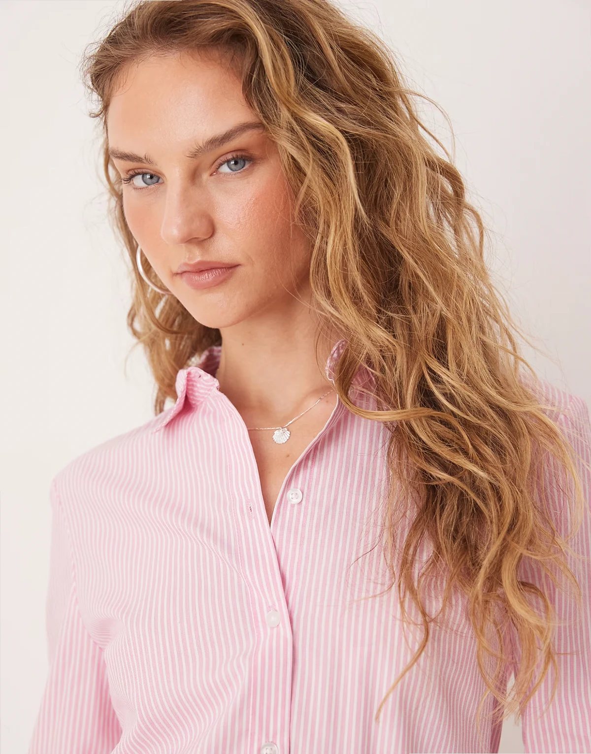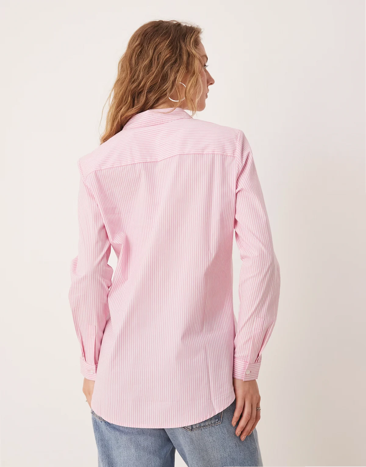 – Langärmlige Hemdbluse in gestreiftem Rosa