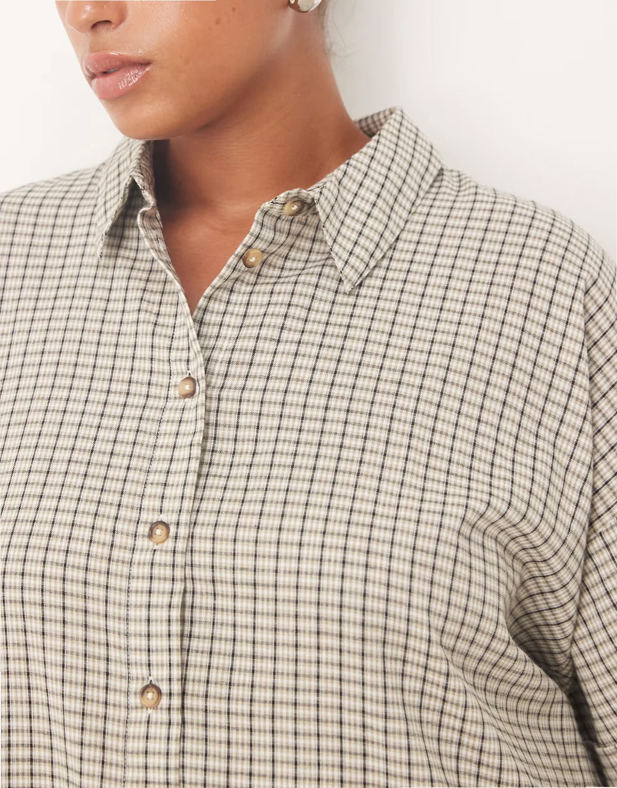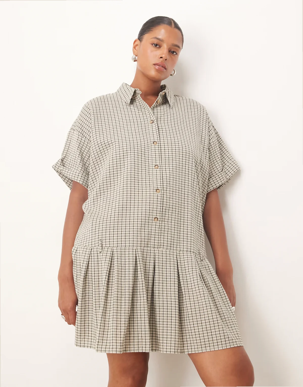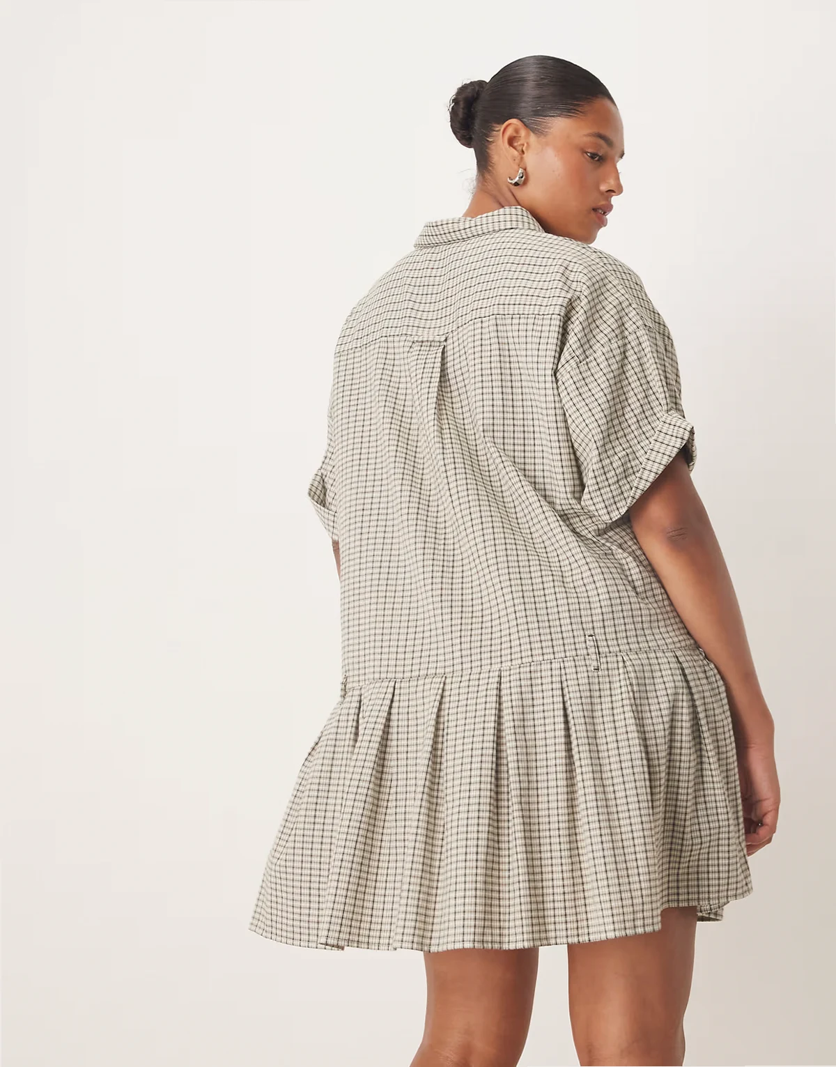 ASOS DESIGN Curve – Kurzes, kariertes Boxy-Fit-Hemdblusenkleid in Schwarz-Weiß mit tiefer Taille