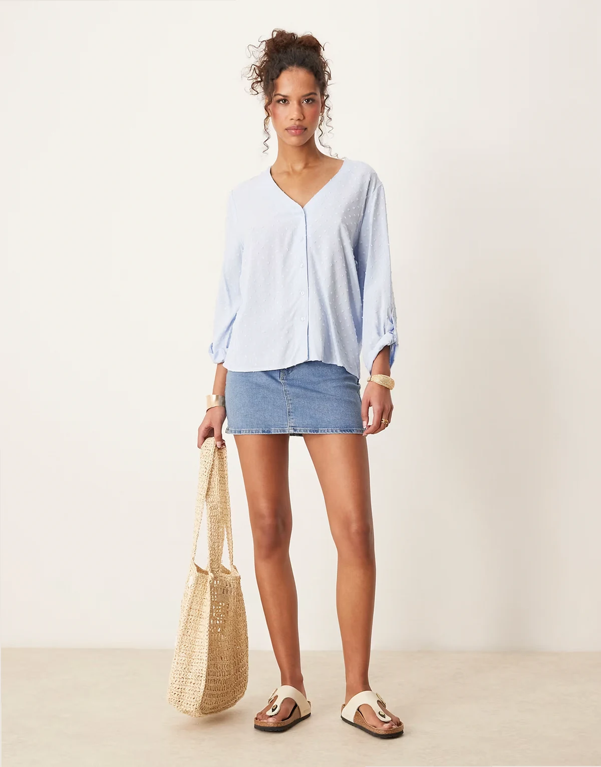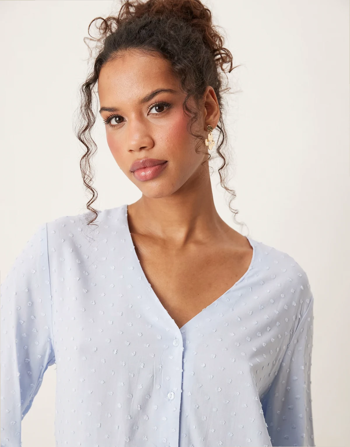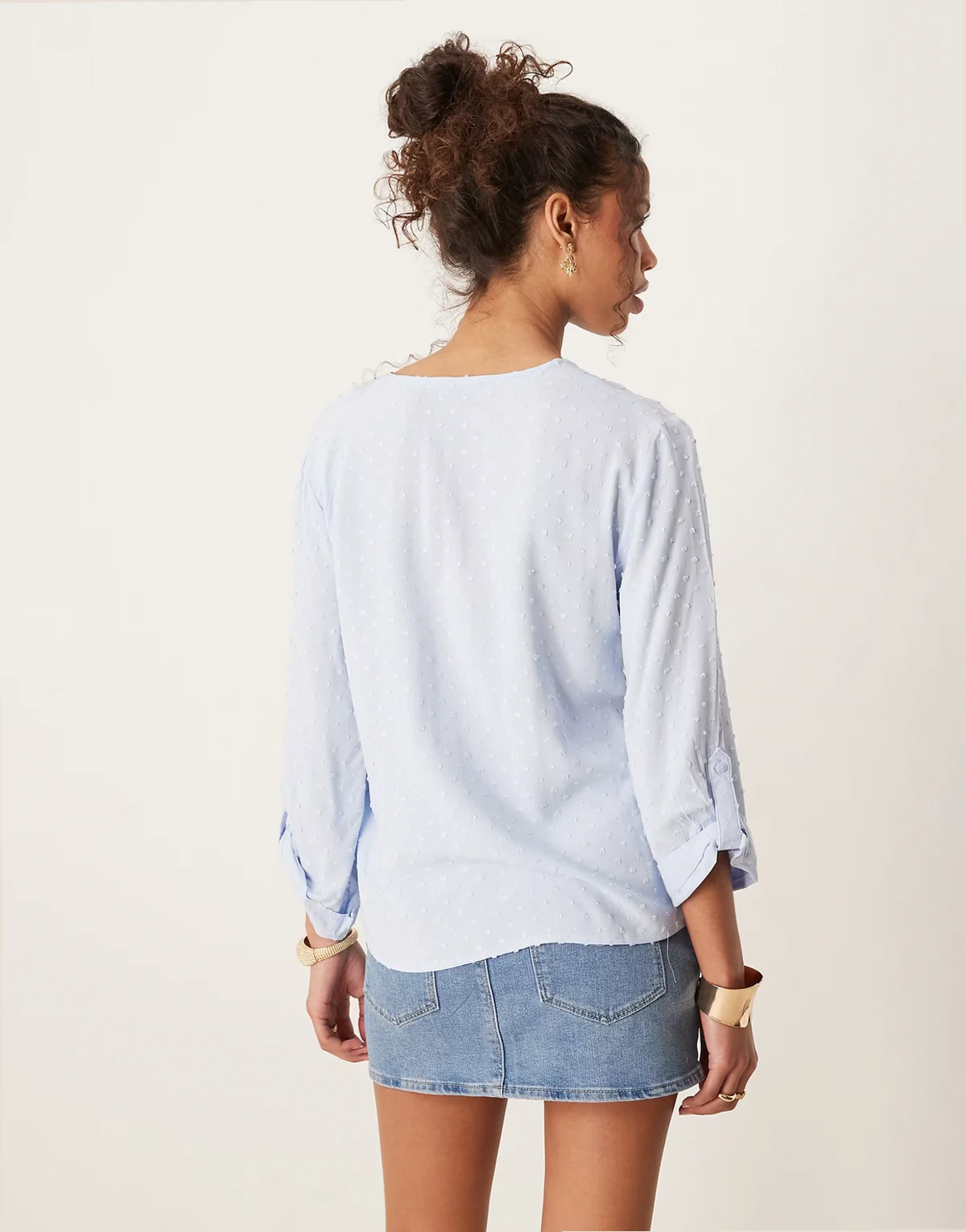 – Locker geschnittene Bluse in Hellblau mit strukturierten Details