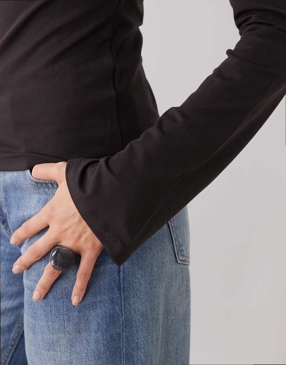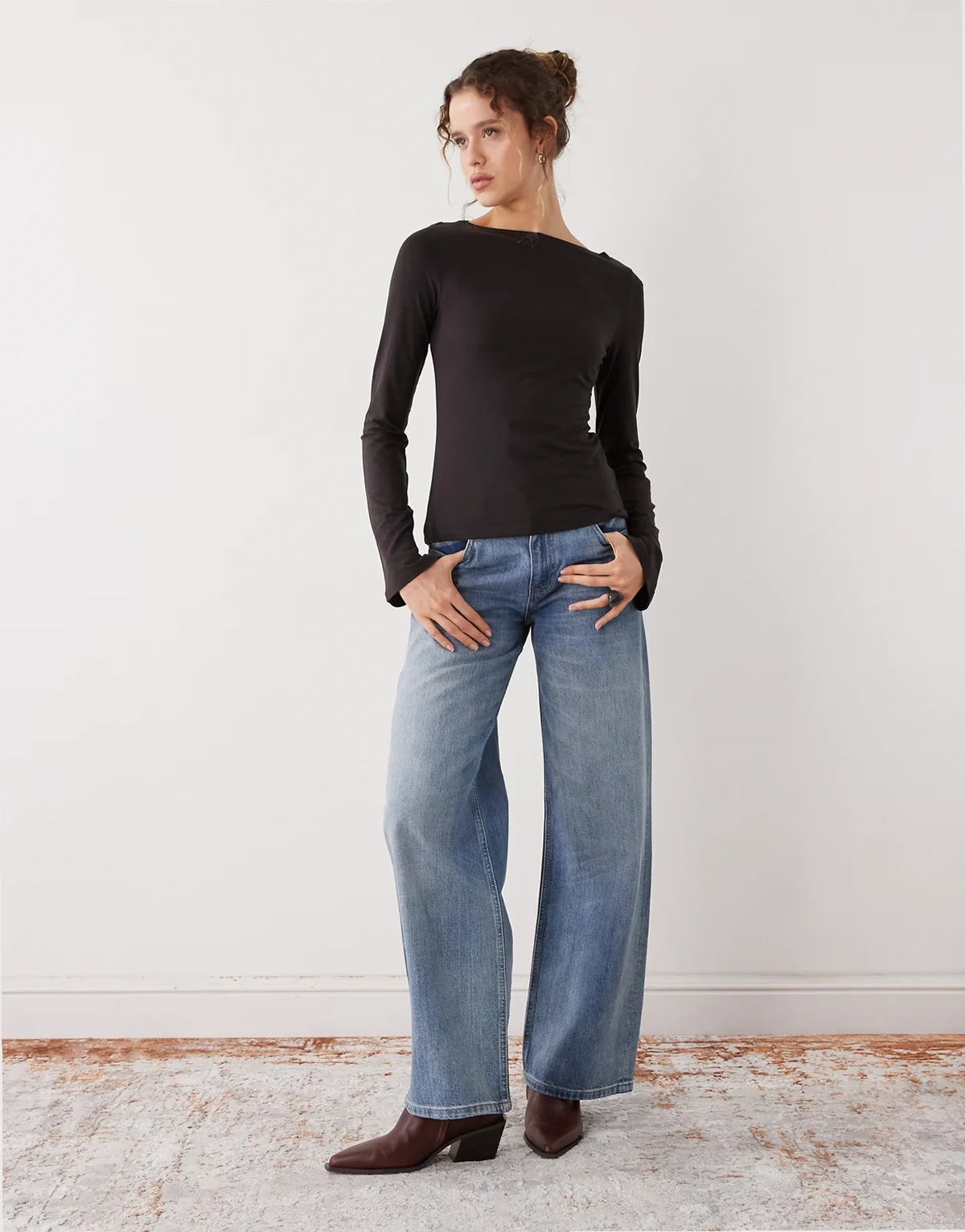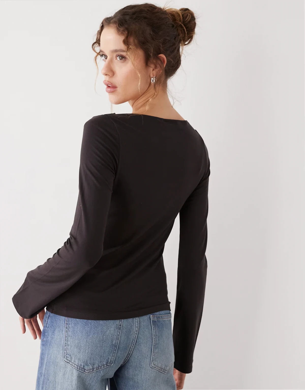 – Annie – Langärmliges Oberteil in Dunkelbraun mit U-Boot-Ausschnitt