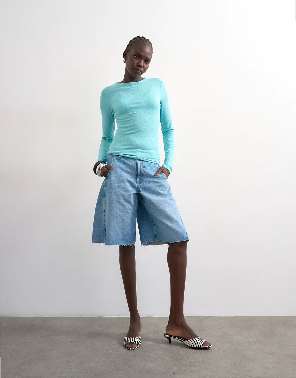 Dieses Oberteil ist aus elastischem Jersey in gerippter Ausführung gefertigt. Dieses graue Regular-Fit-Modell hat einen Rundhalsausschnitt und lange Ärmel.