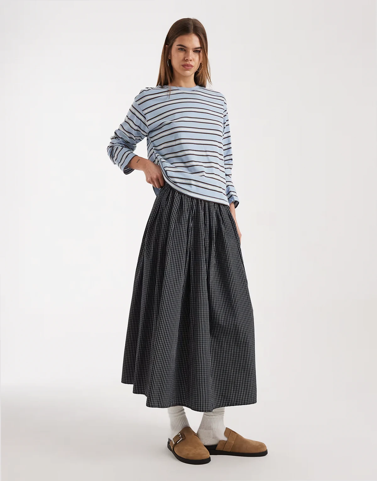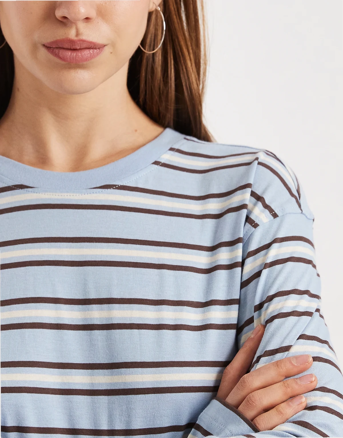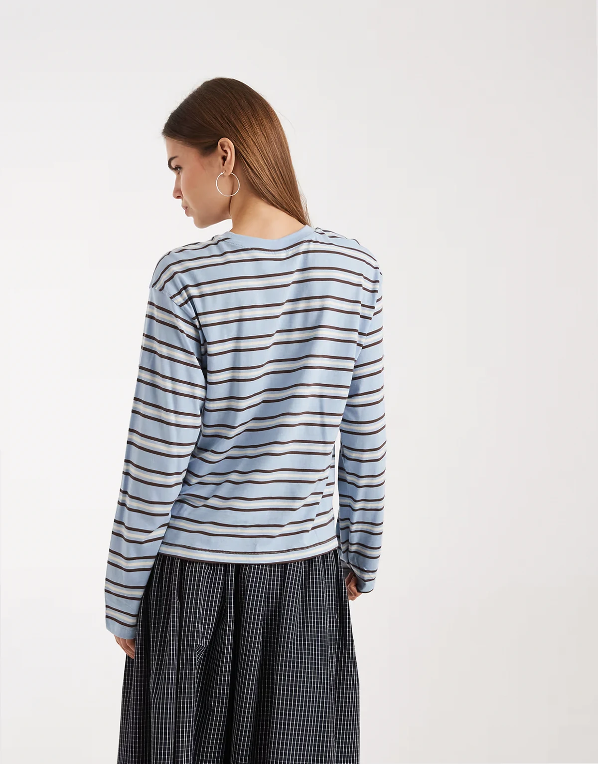 – Kastiges, langärmliges Oberteil in Blau und Schokobraun gestreift