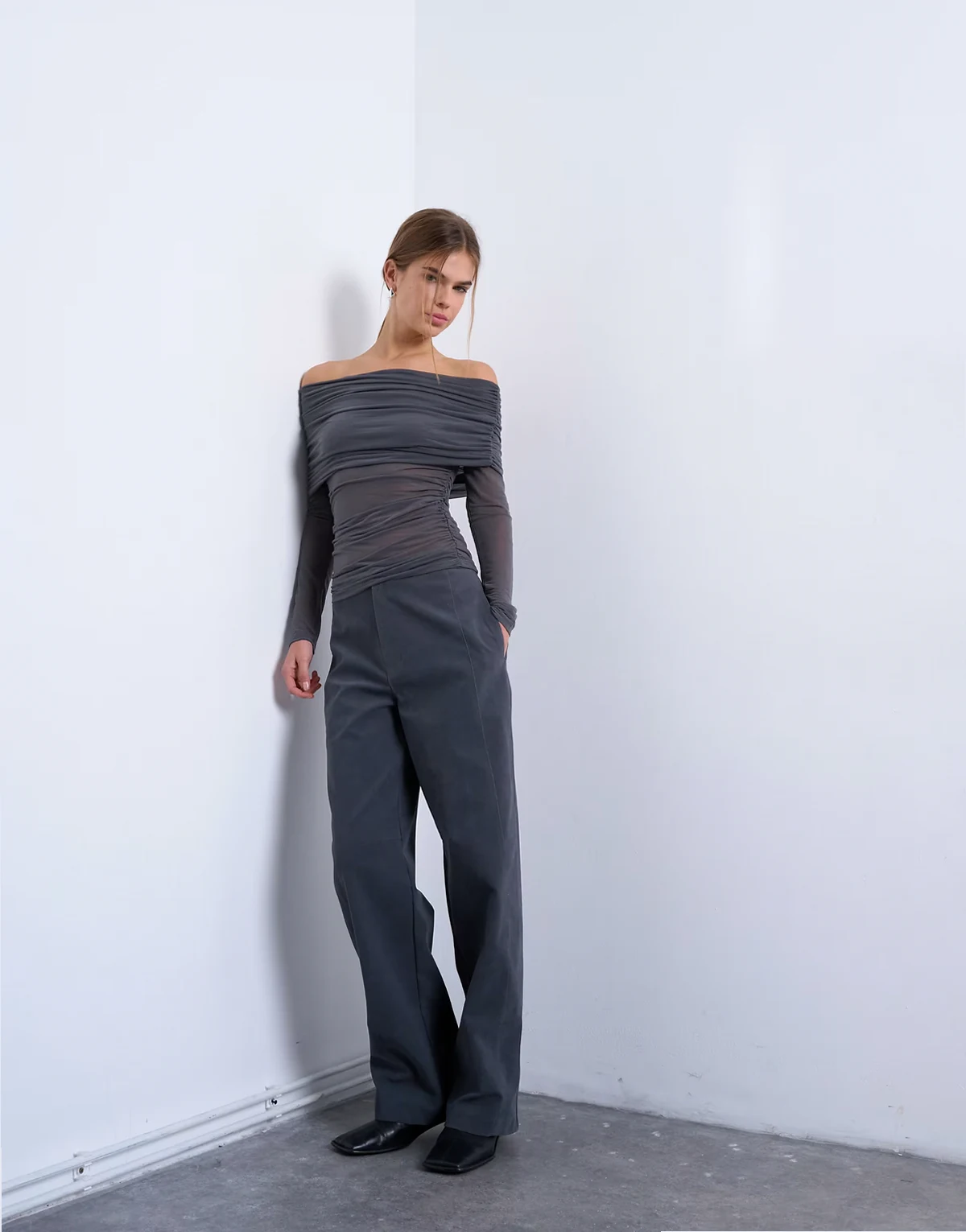 Dieses Oberteil ist aus einem feinen Netzstoff gefertigt. Das schulterfreie Design zeichnet sich durch lange Ärmel und geraffte Details aus. Das Modell hat eine schmale Passform.
