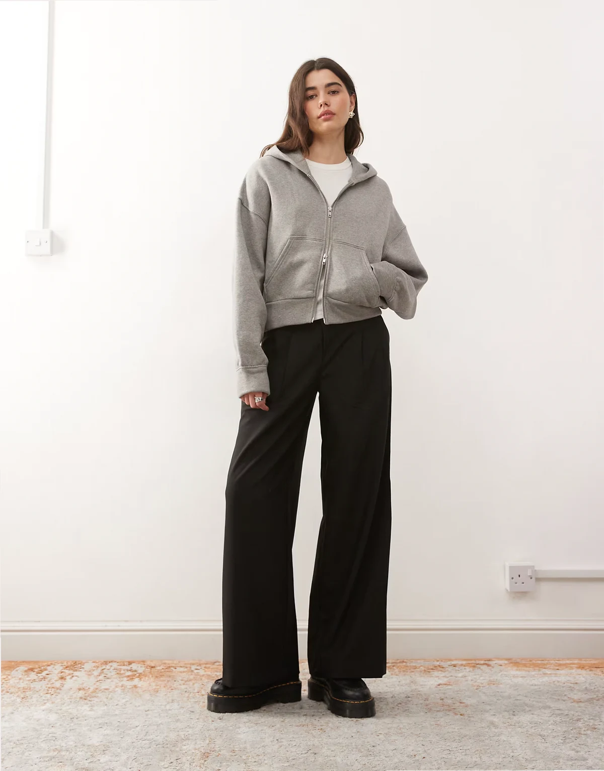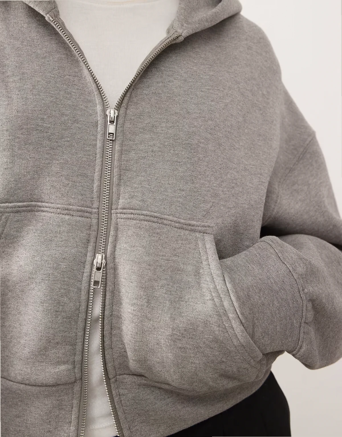 – Kastige Oversize-Kapuzenjacke in meliertem Grau