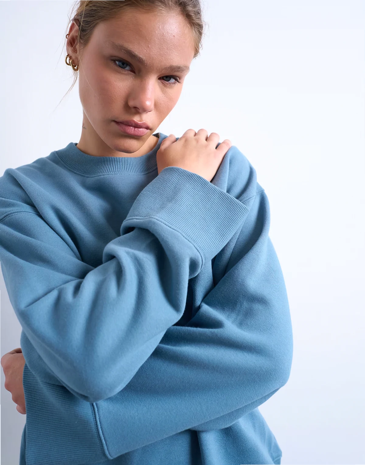 Dieses Sweatshirt ist aus einem weichen und warmen Stoff mit einer kuschelig angerauten Innenseite gefertigt. Es hat ein schlichtes Design, einen Rundhalsausschnitt, weite Ärmel und ist locker geschnitten.
